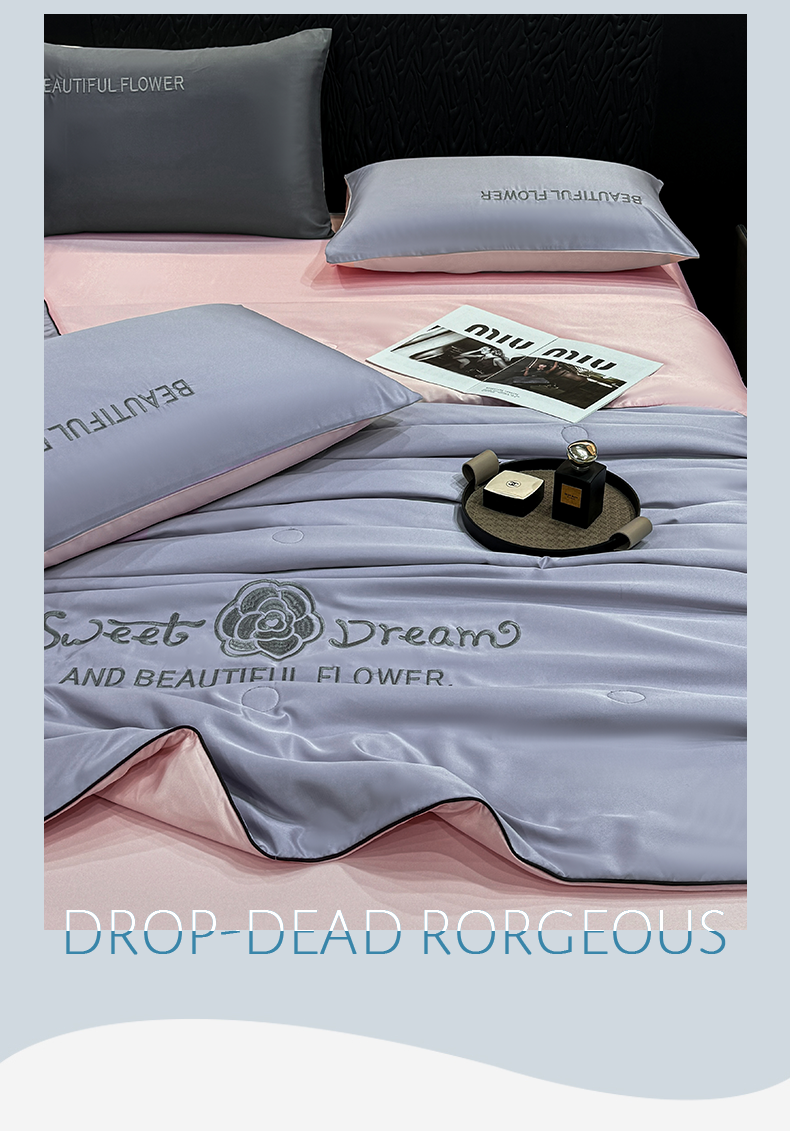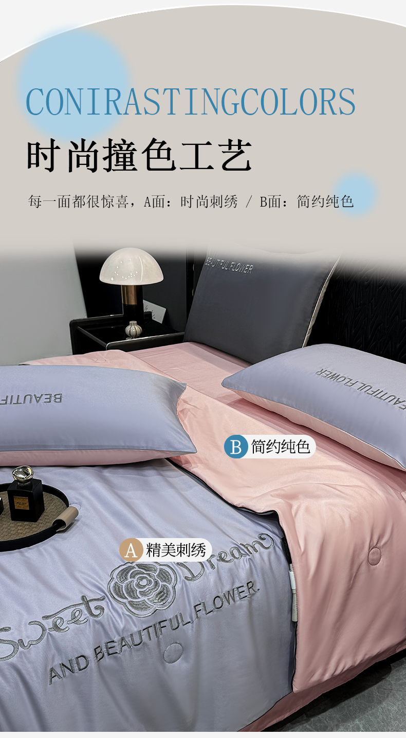 (总)欢乐季 2026新款A类水洗冰丝山茶花刺绣夏被夏凉被空调被四件套,宾利蓝+奶茶,高级灰+奶茶,奶茶+高级灰,青绿+香槟,天空蓝+奶茶,香芋紫+樱花粉,樱花粉+奶黄
