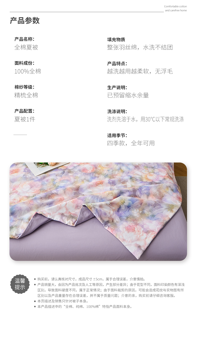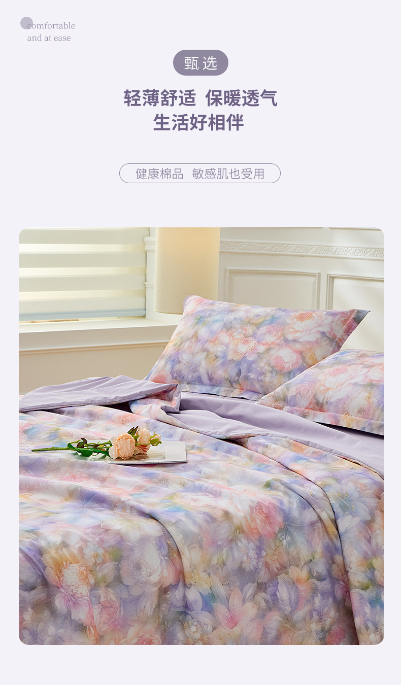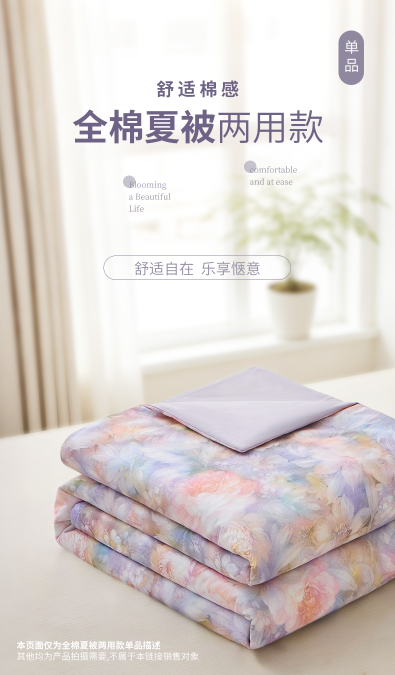 商品名称:元元家居(元元被业) 2026新款全棉纯棉13372印花两用夏被夏凉被空调被 春风