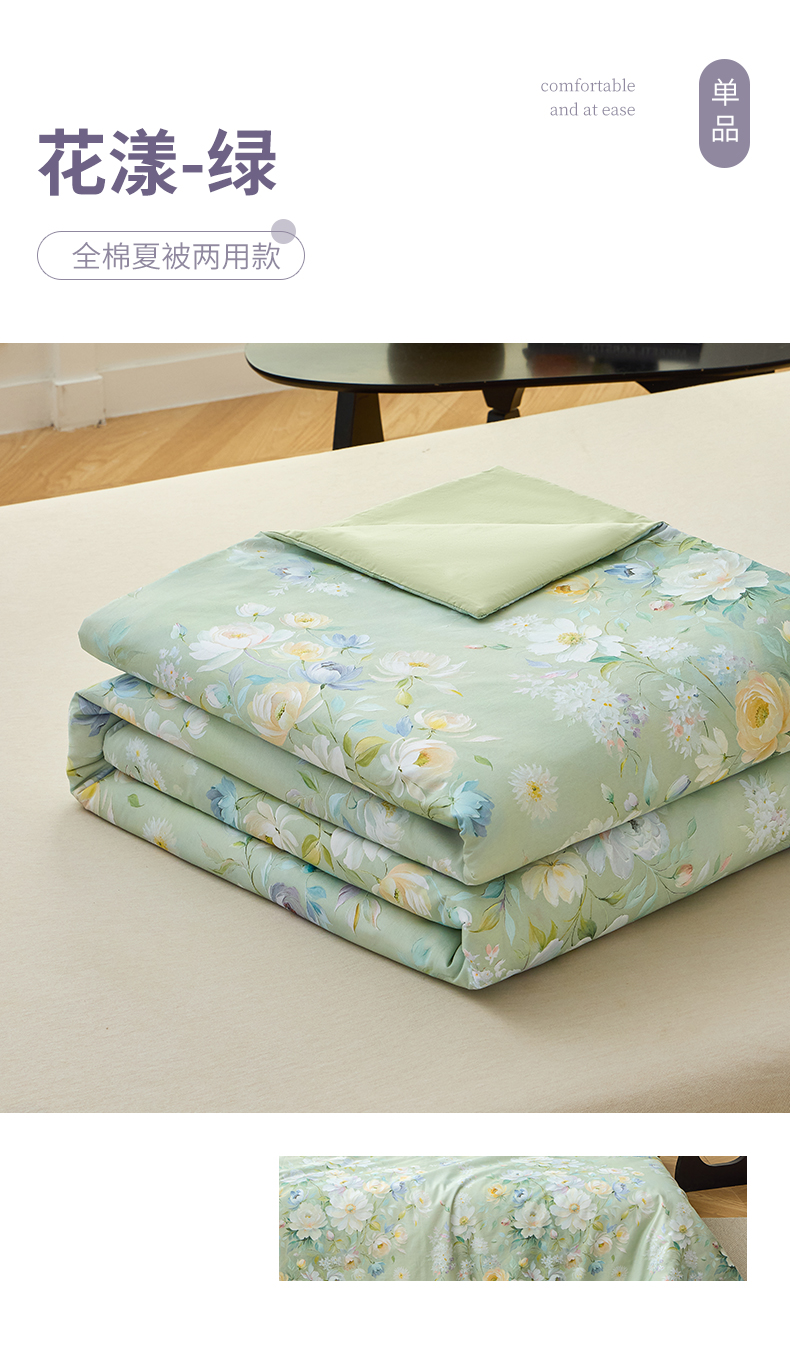 商品名称:元元家居(元元被业) 2026新款全棉纯棉13372印花两用夏被夏凉被空调被 花漾绿