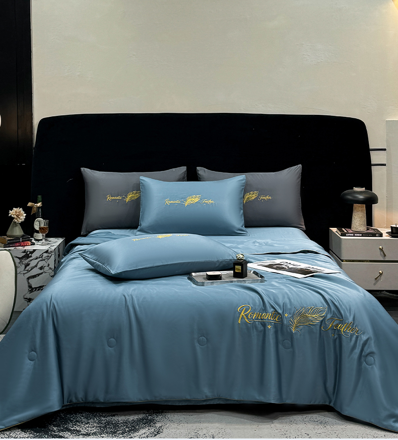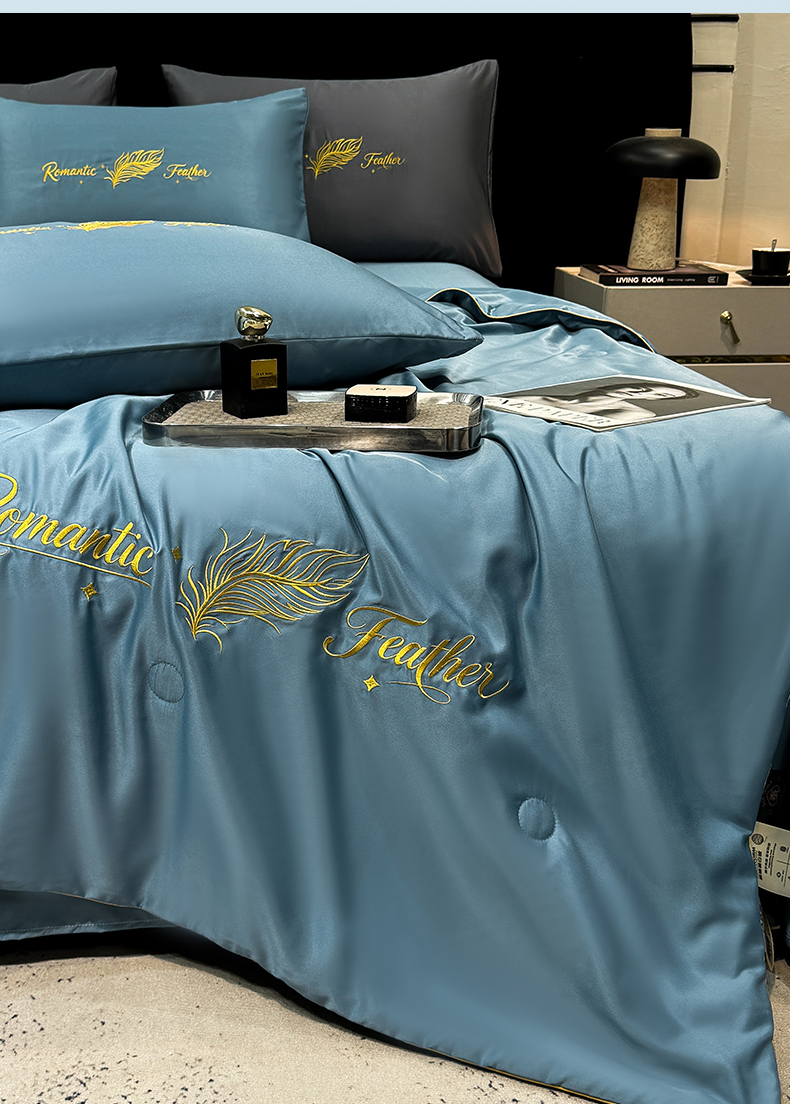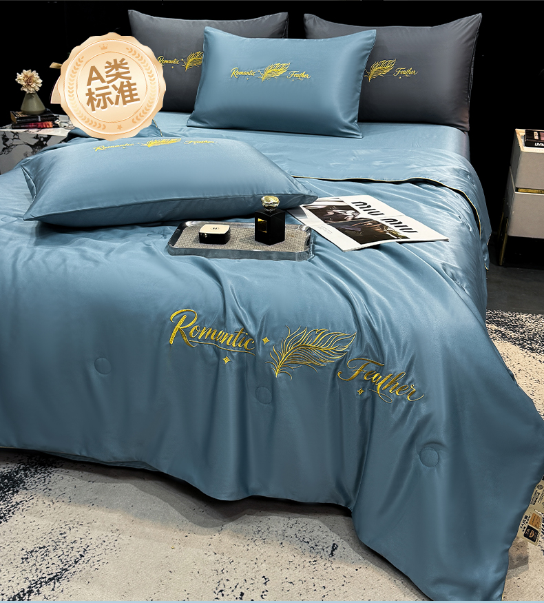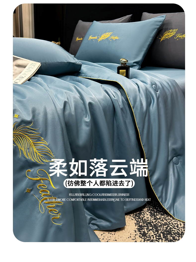 商品名称:(总)欢乐季 2026新款A类水洗冰丝羽毛刺绣夏被夏凉被空调被四件套