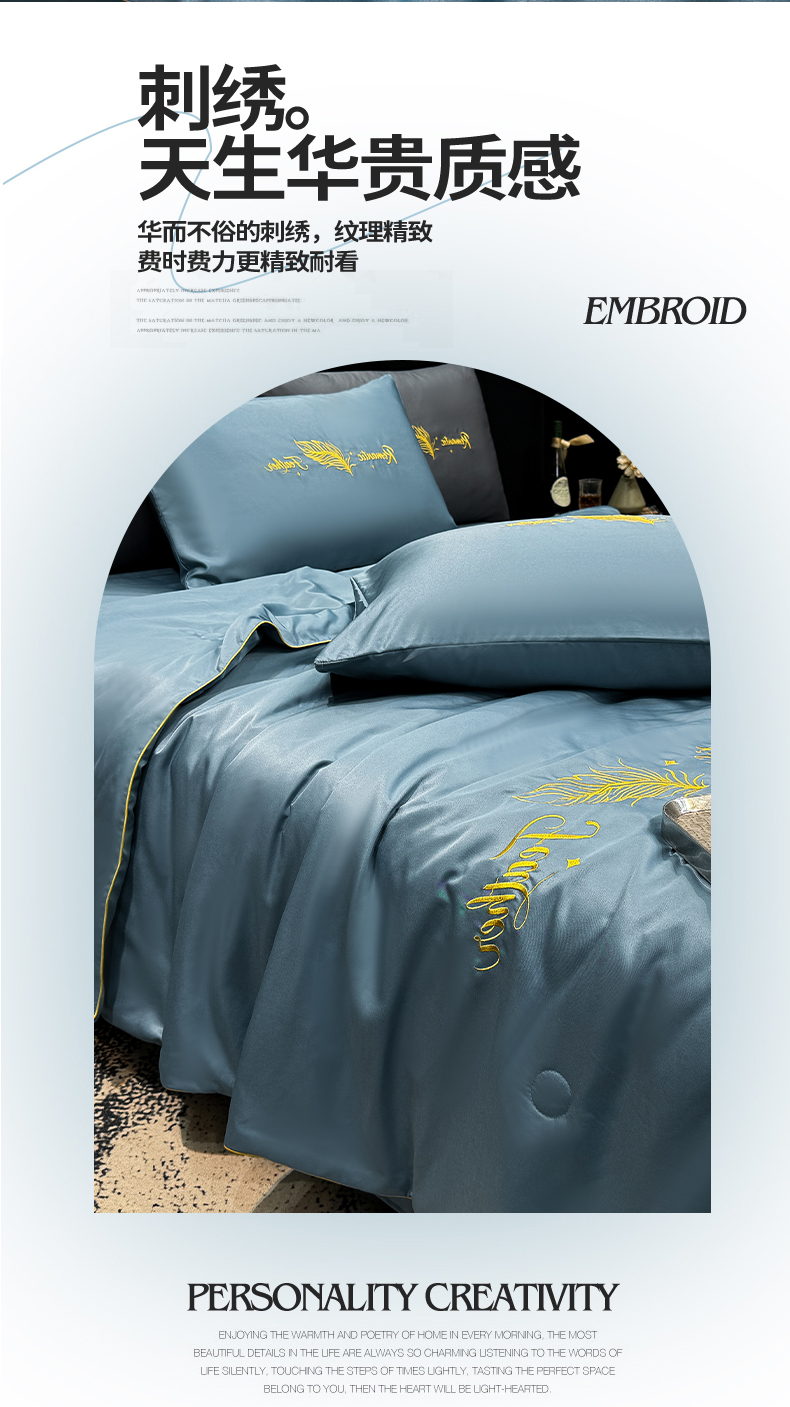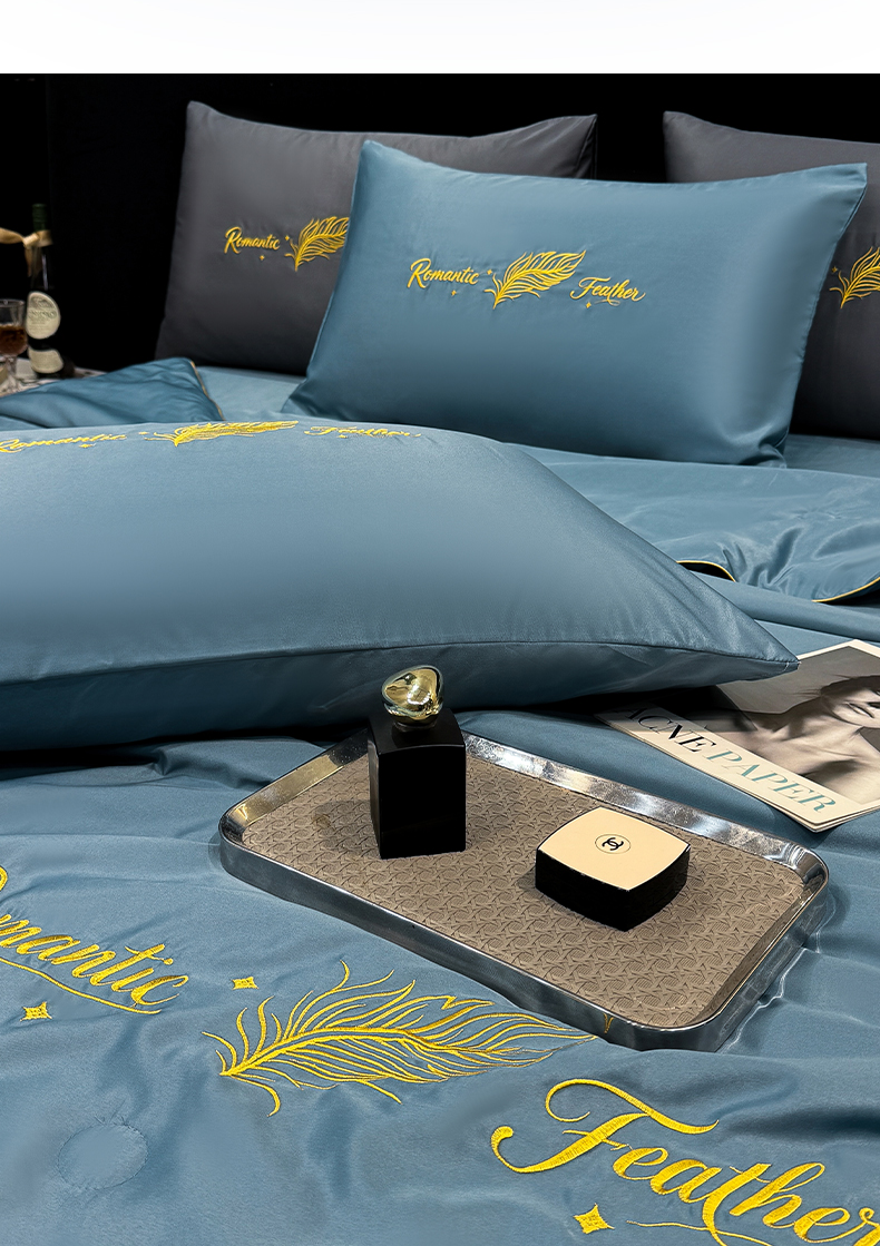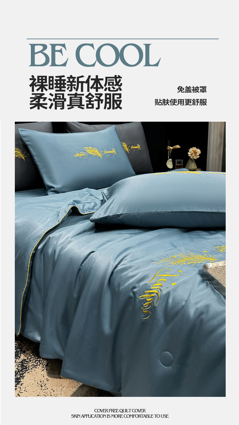 商品名称:(总)欢乐季 2026新款A类水洗冰丝羽毛刺绣夏被夏凉被空调被四件套