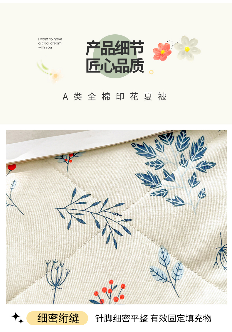商品名称:米萝家居 2026新款全棉夏凉被纯棉空调被印花夏被 半亩花田