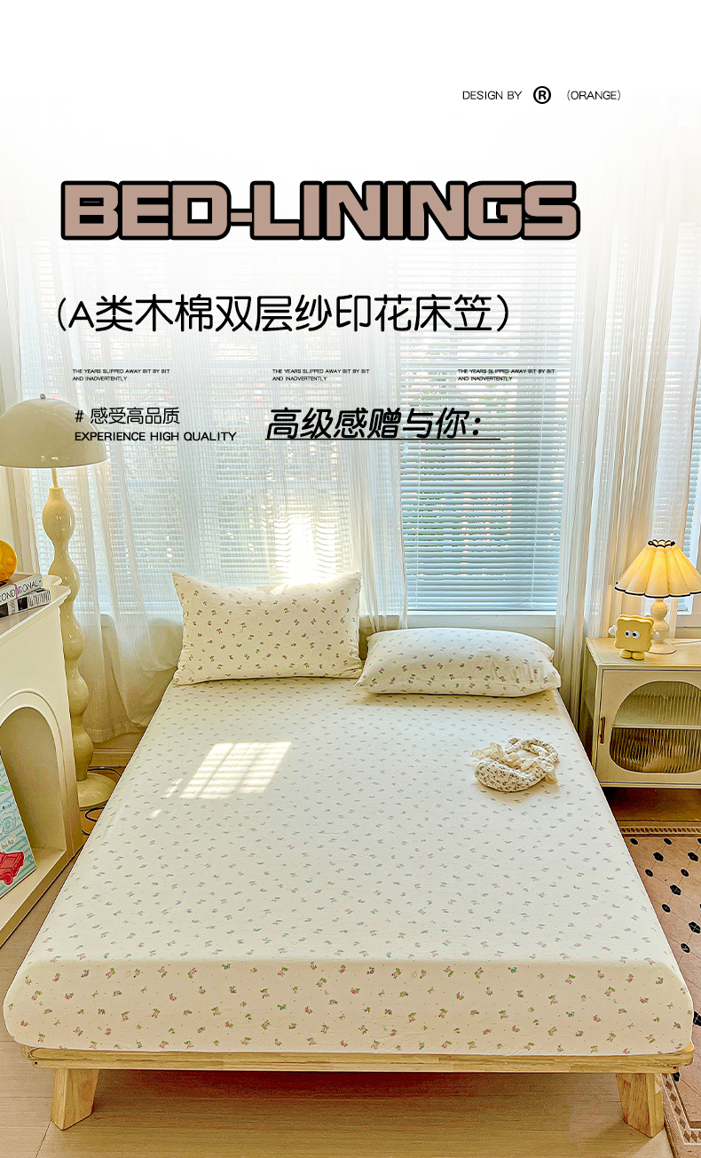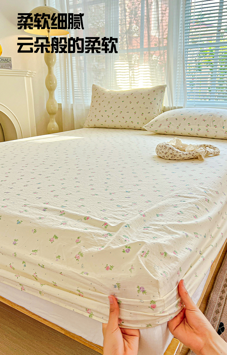 当前位置: 91家纺网 > 商品网购 > 床上用品 > 床笠 > 优选 2026新款ins小清新木棉双层纱印花床笠床垫保护罩枕套三件套 春日繁花