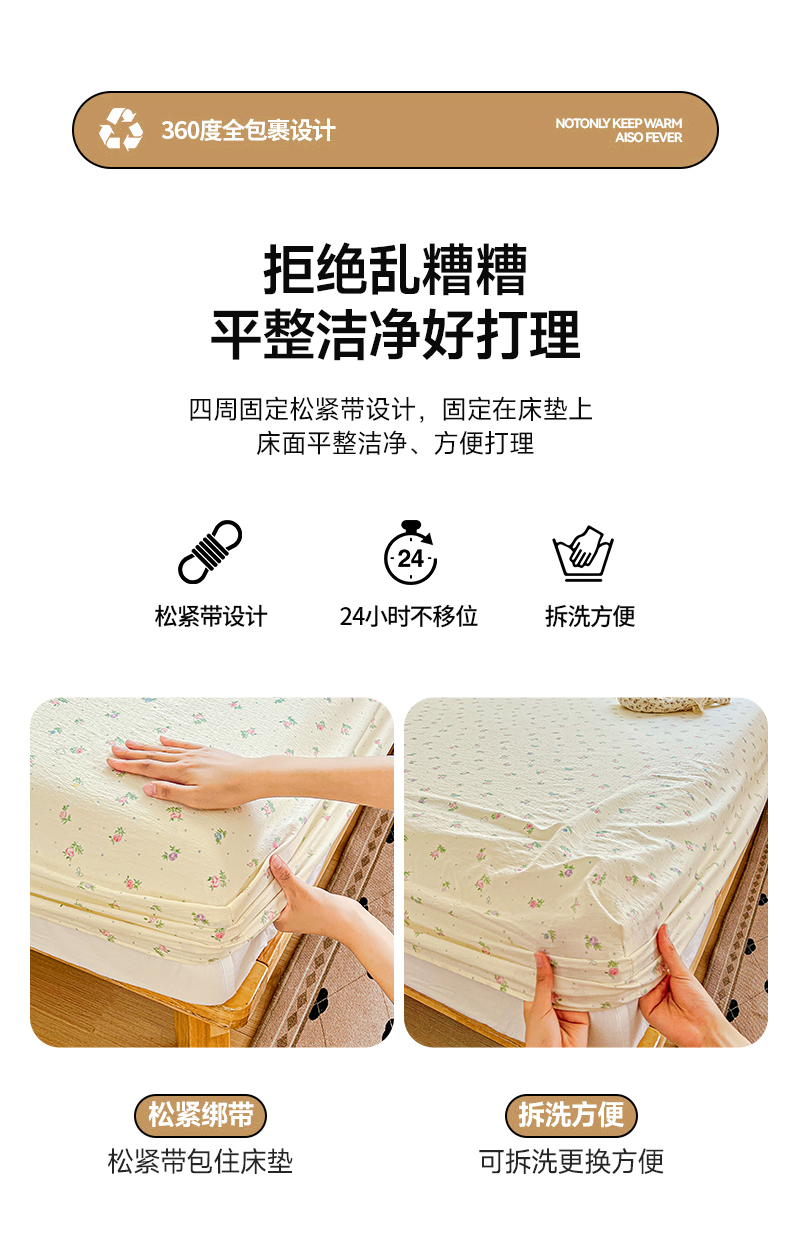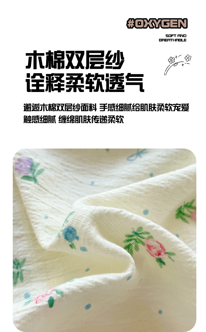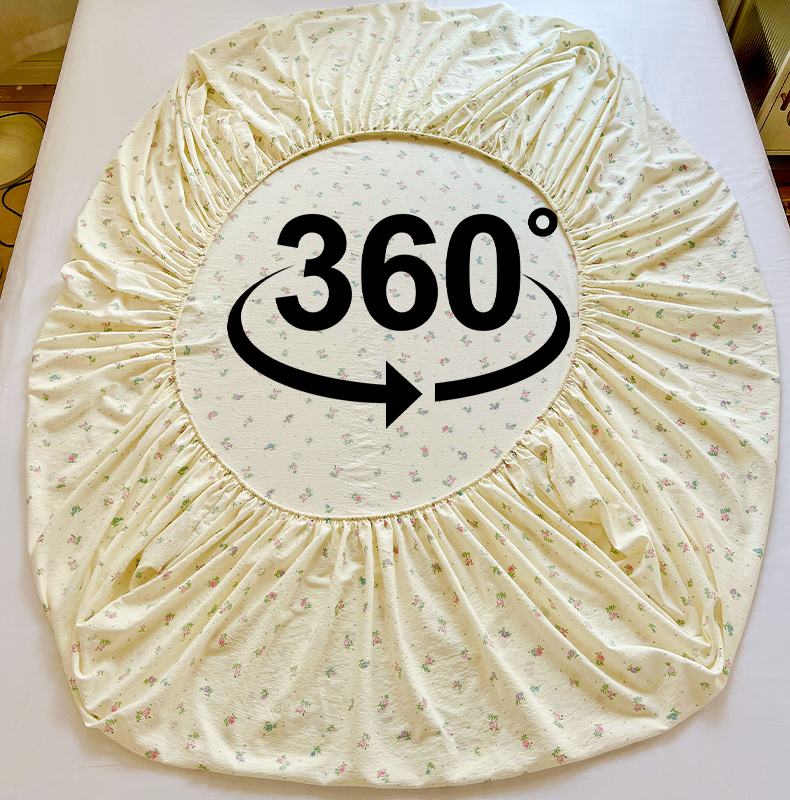 • 91家纺网 家纺一手货源 找家纺 优选 2026新款ins小清新木棉双层纱印花床笠床垫保护罩枕套三件套 春日繁花