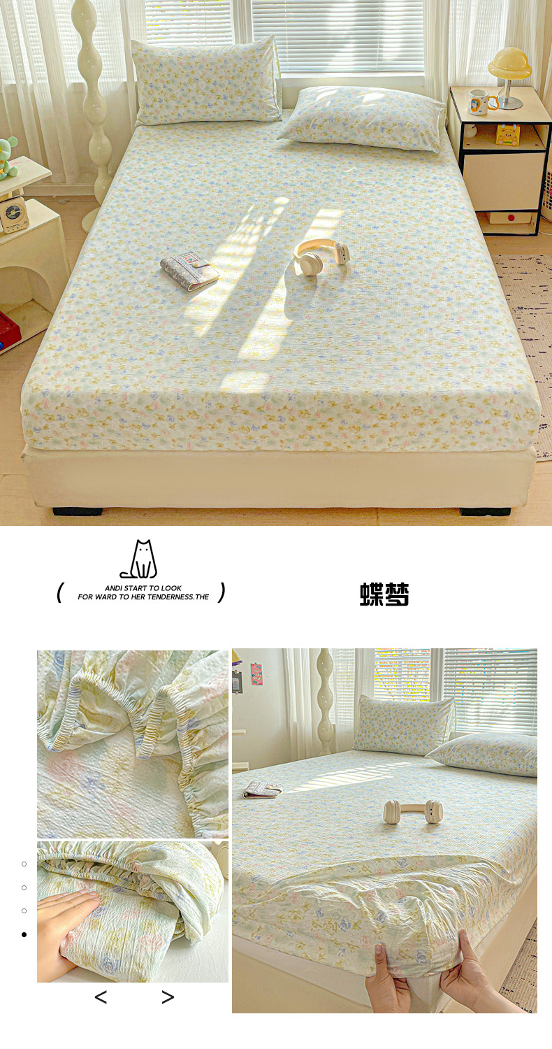 • 91家纺网 家纺一手货源 找家纺 (总)优选 2026新款ins小清新木棉双层纱印花床笠床垫保护罩枕套三件套,组合图仅做展示,爱心,春朵,蝶梦,繁苏,酣春,华梦,绮梦,素锦,复古浪漫,蝴蝶谷,蝴蝶结-蓝,蝴蝶结-紫,恋曲,梦露,晚风逐梦,微甜,宠溺,春日繁花,小点点,南瓜堡,花汀