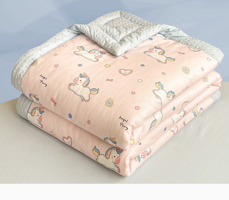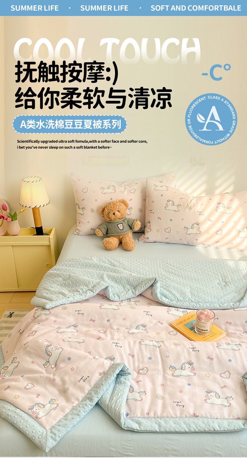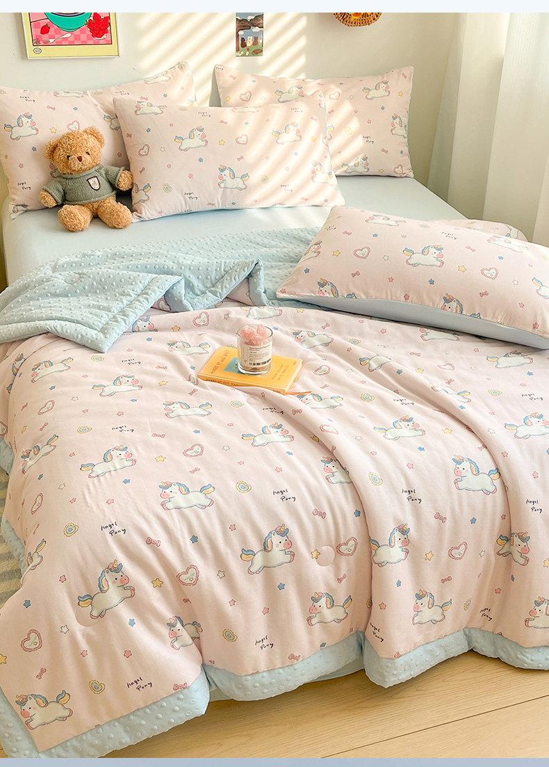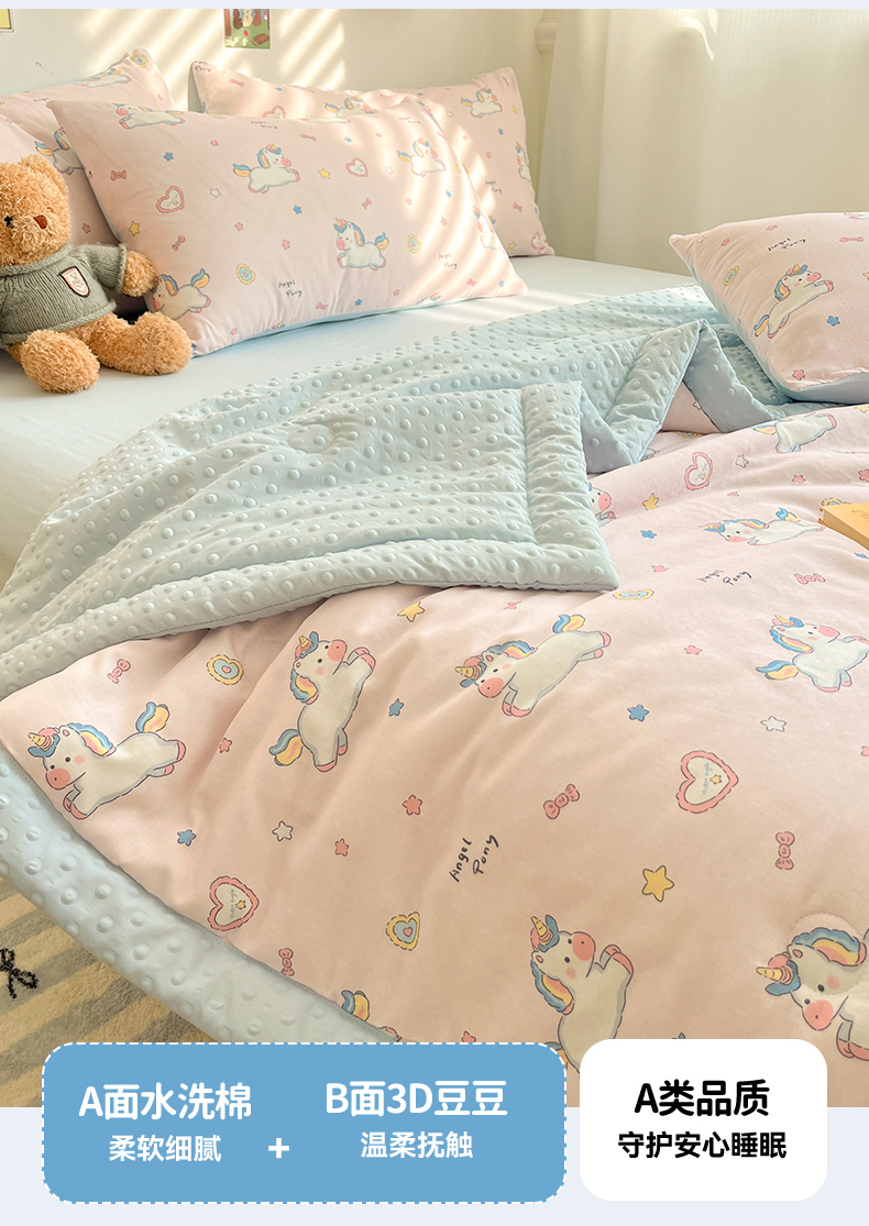 盛秋家纺 2026新款A类水洗棉豆豆夏被系列二 独角兽粉+天空蓝