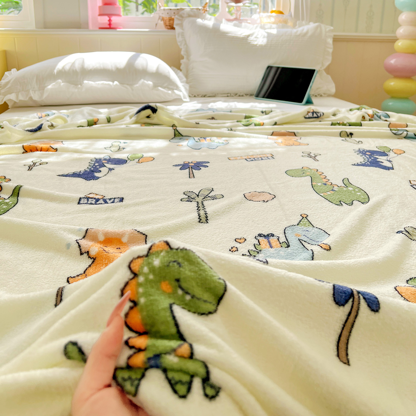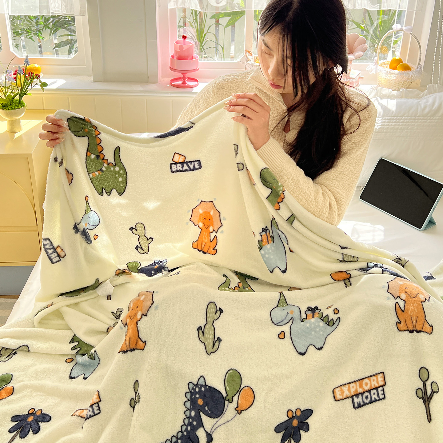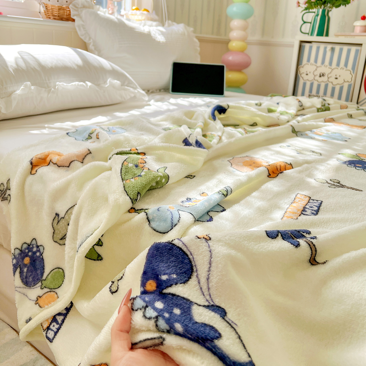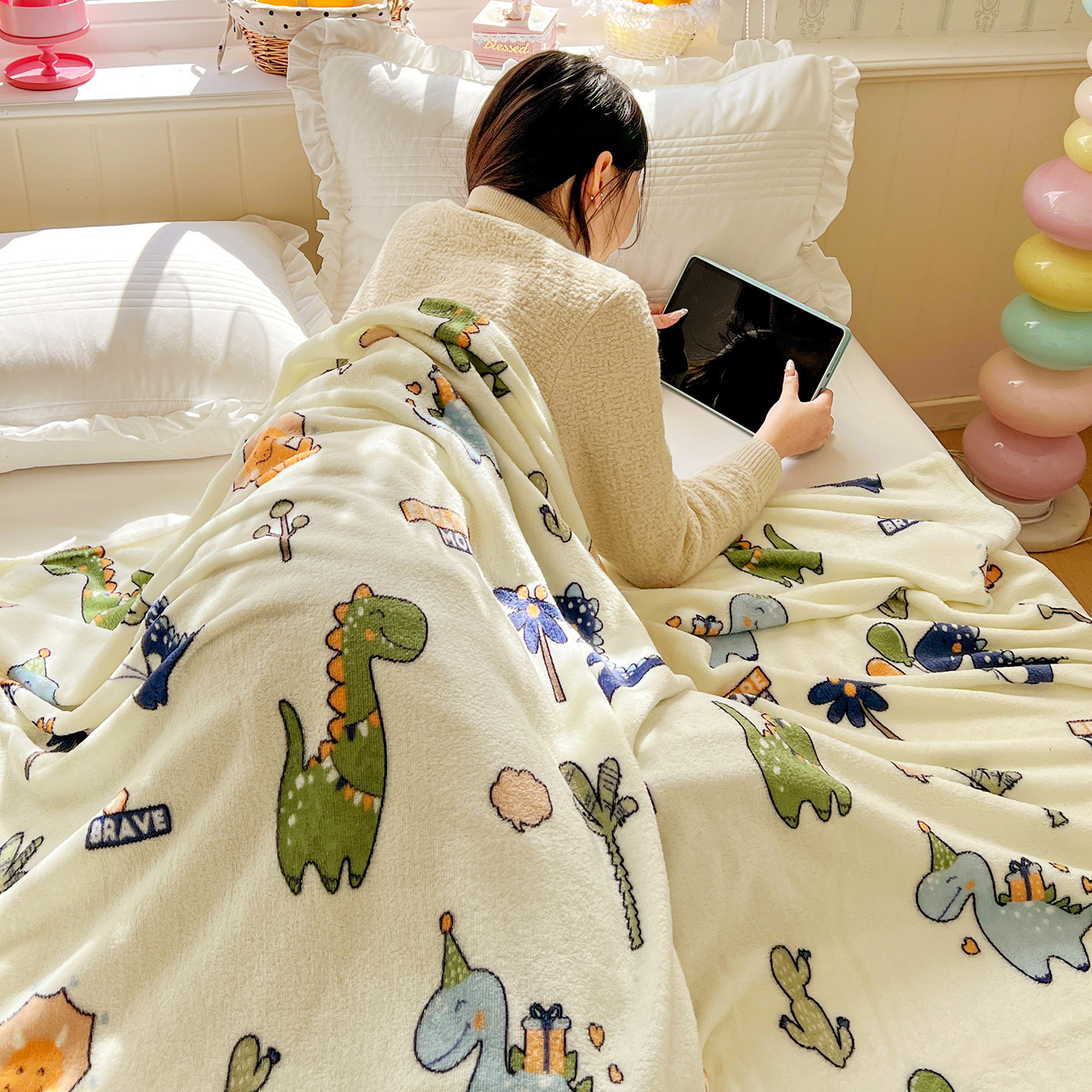 悦织湾家纺 2026新款印花法兰绒毛毯牛奶绒盖毯春秋空调毯儿童床单小被子 恐龙宝贝