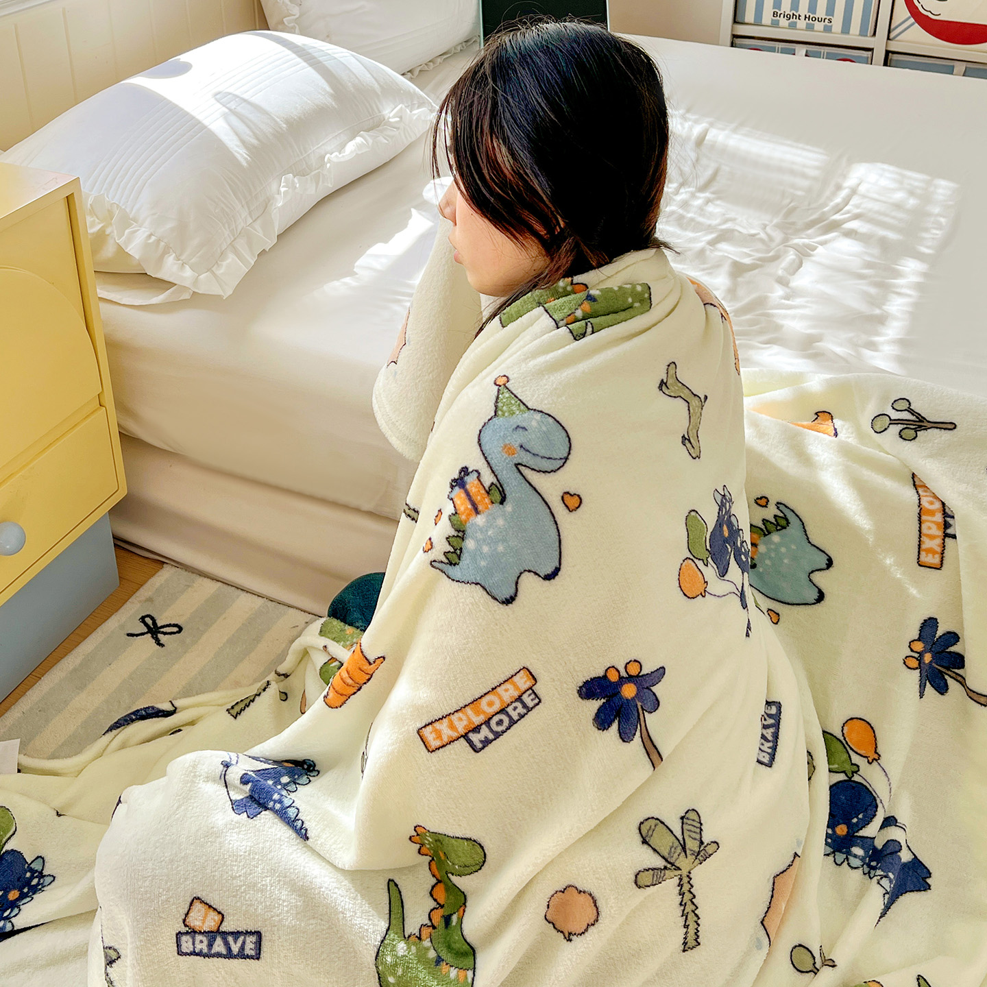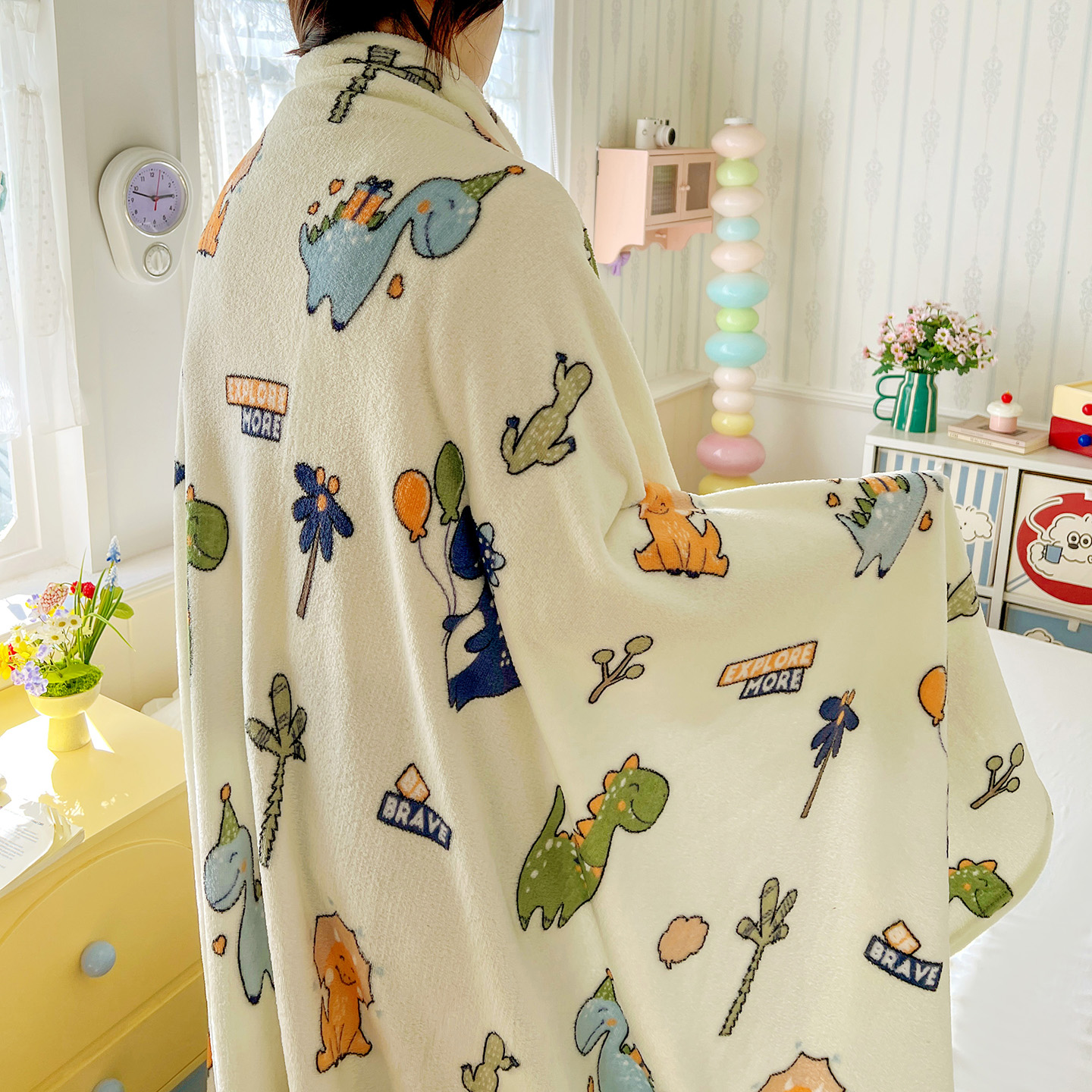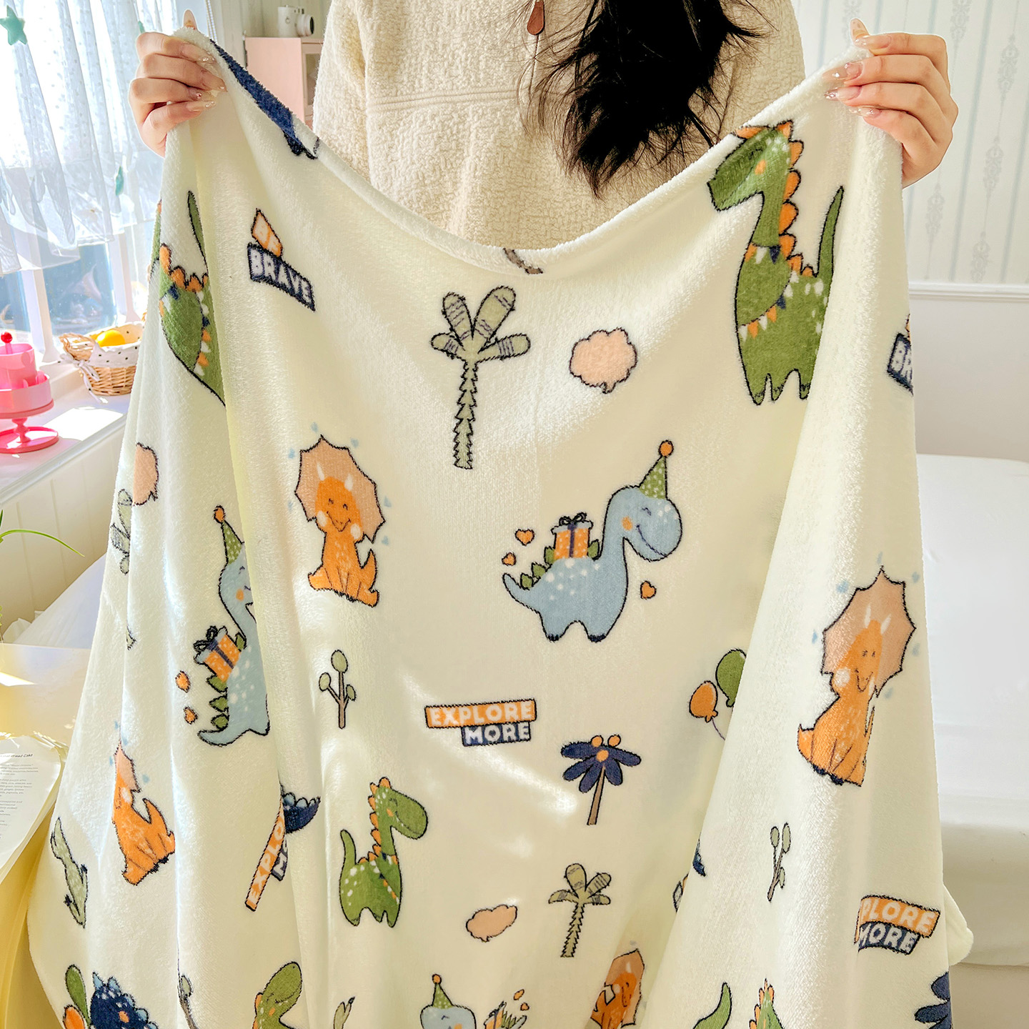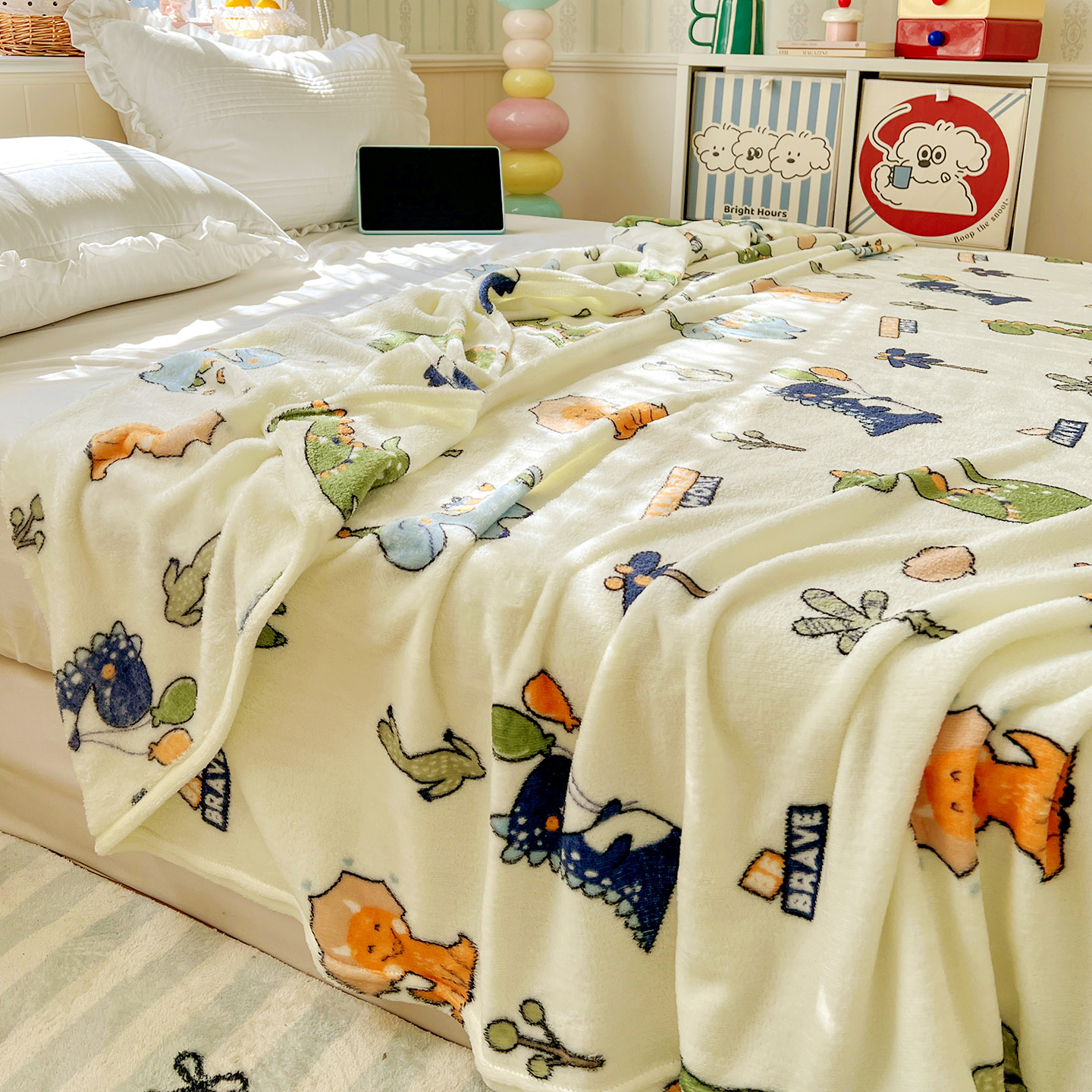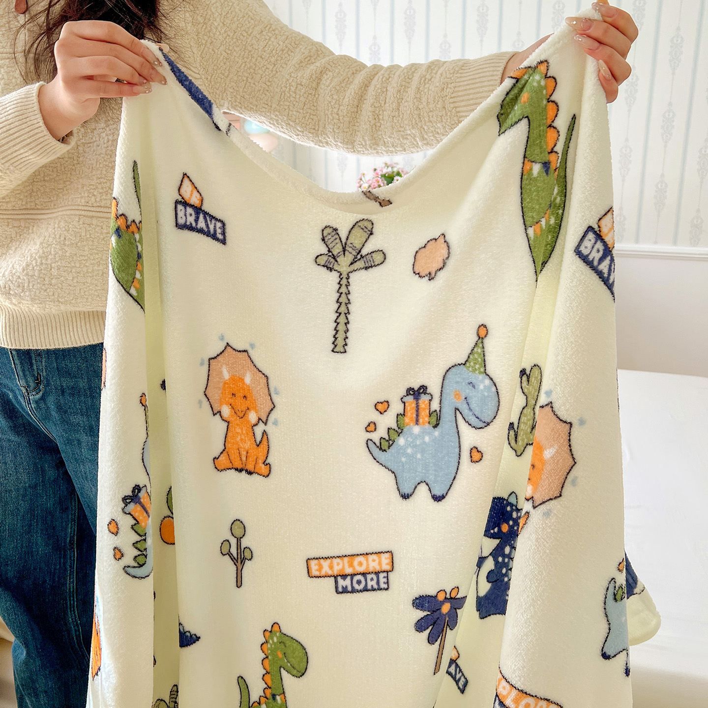 商品名称:悦织湾家纺 2026新款印花法兰绒毛毯牛奶绒盖毯春秋空调毯儿童床单小被子 恐龙宝贝