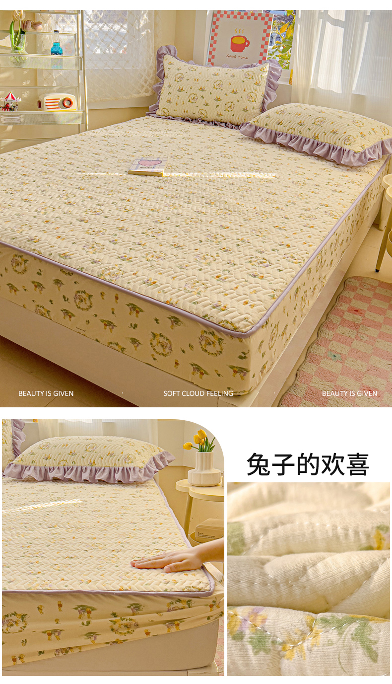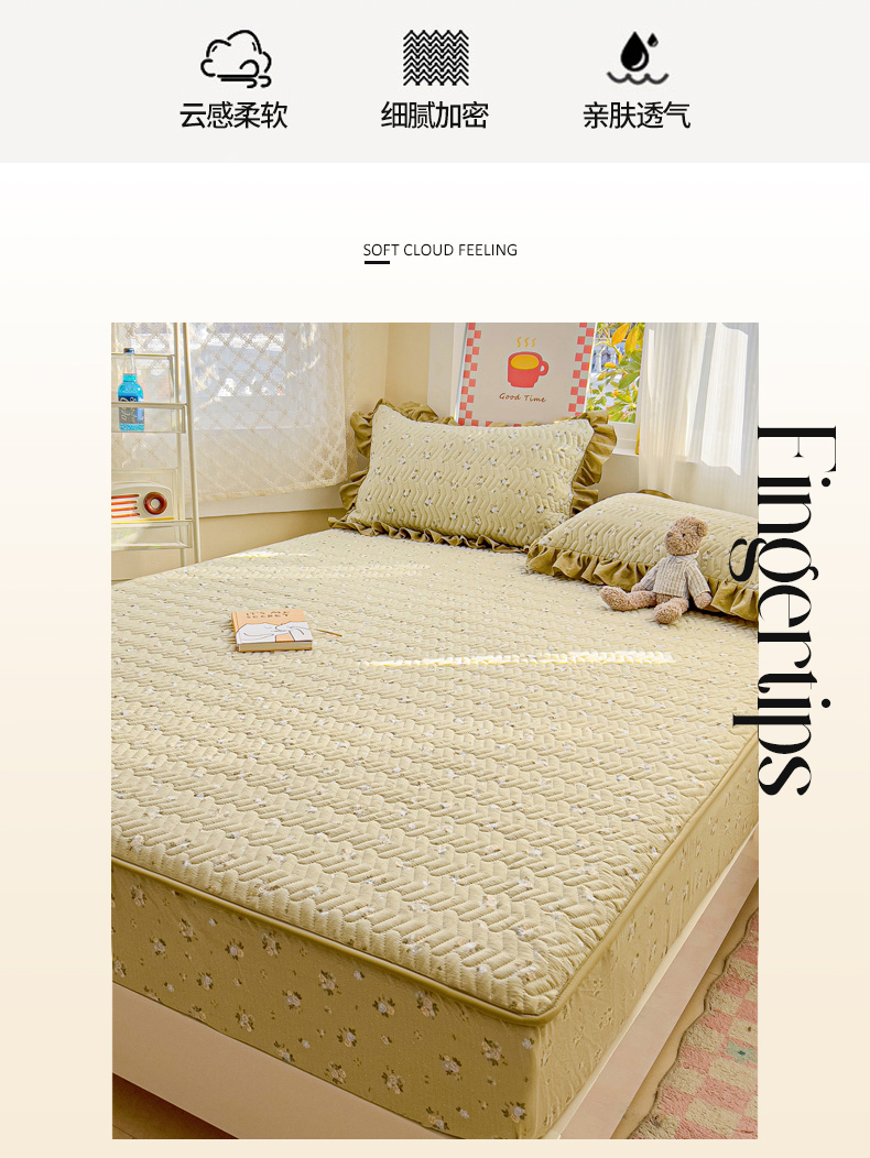 (总)纽缦家纺 2026春夏新款云朵提花双层纱夹棉绗缝单床笠 床笠单件