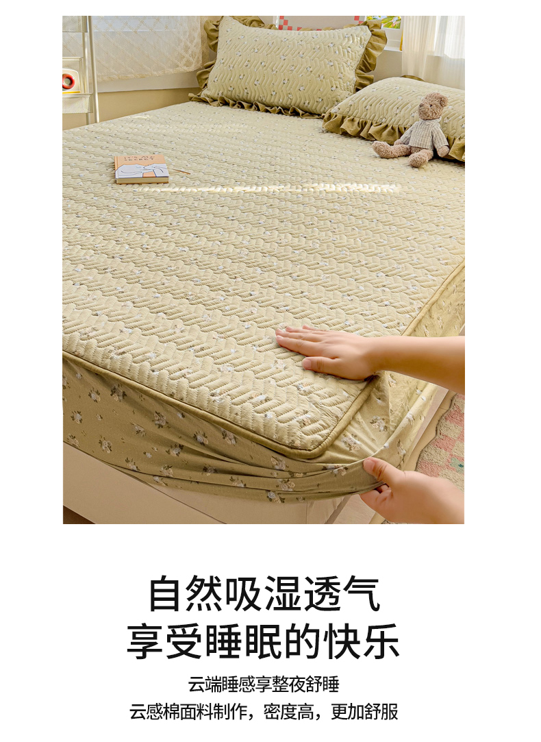 纽缦家纺 2026春夏新款云朵提花双层纱夹棉绗缝单床笠 床笠单件 见花则喜