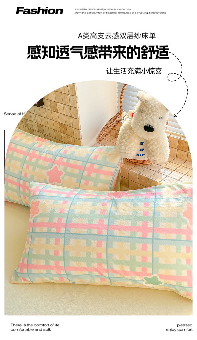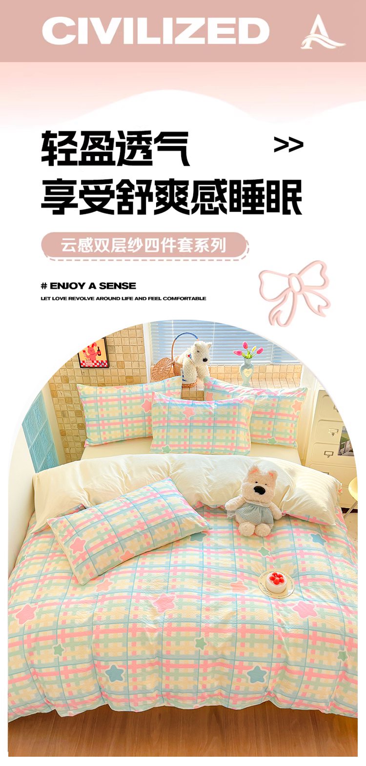 当前位置: 91家纺网 > 商品网购 > 床品套件 > 四件套 > 双层纱四件套 > 川悦生活 2026新款云感双层纱木棉四件套 杏仁小星星