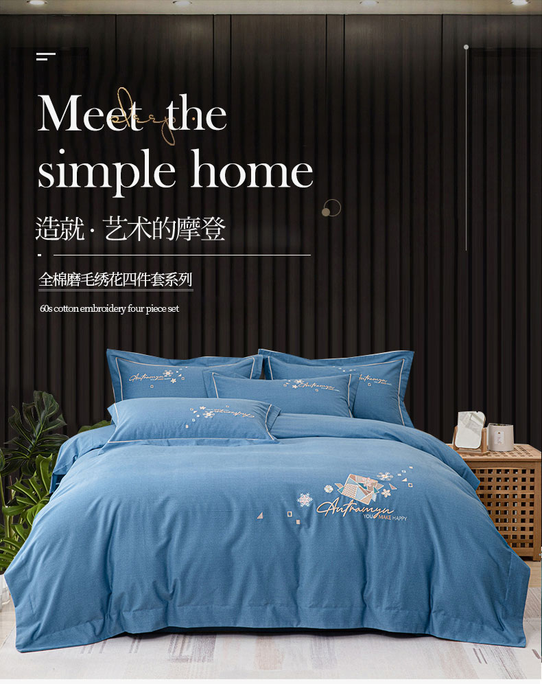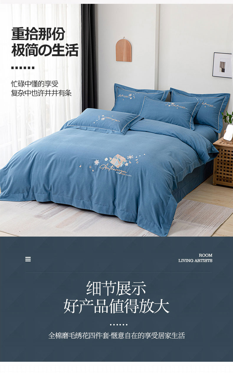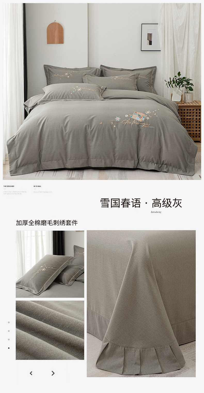 (总)缘舒家纺 2025新款全棉加厚工艺款绣花磨毛四件套,雪国春语-宝蓝,雪国春语-高级灰,雪国春语-浅绿,雪国春语-桃紫,自由格调-豆沙,自由格调-湖蓝,自由格调-橘色,自由格调-银灰