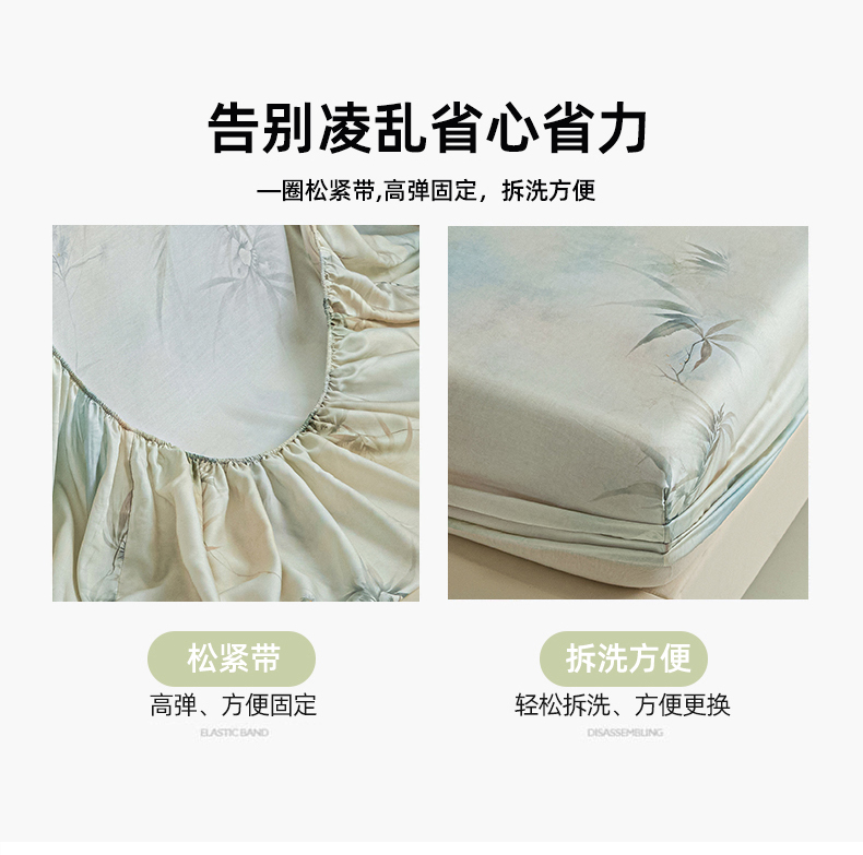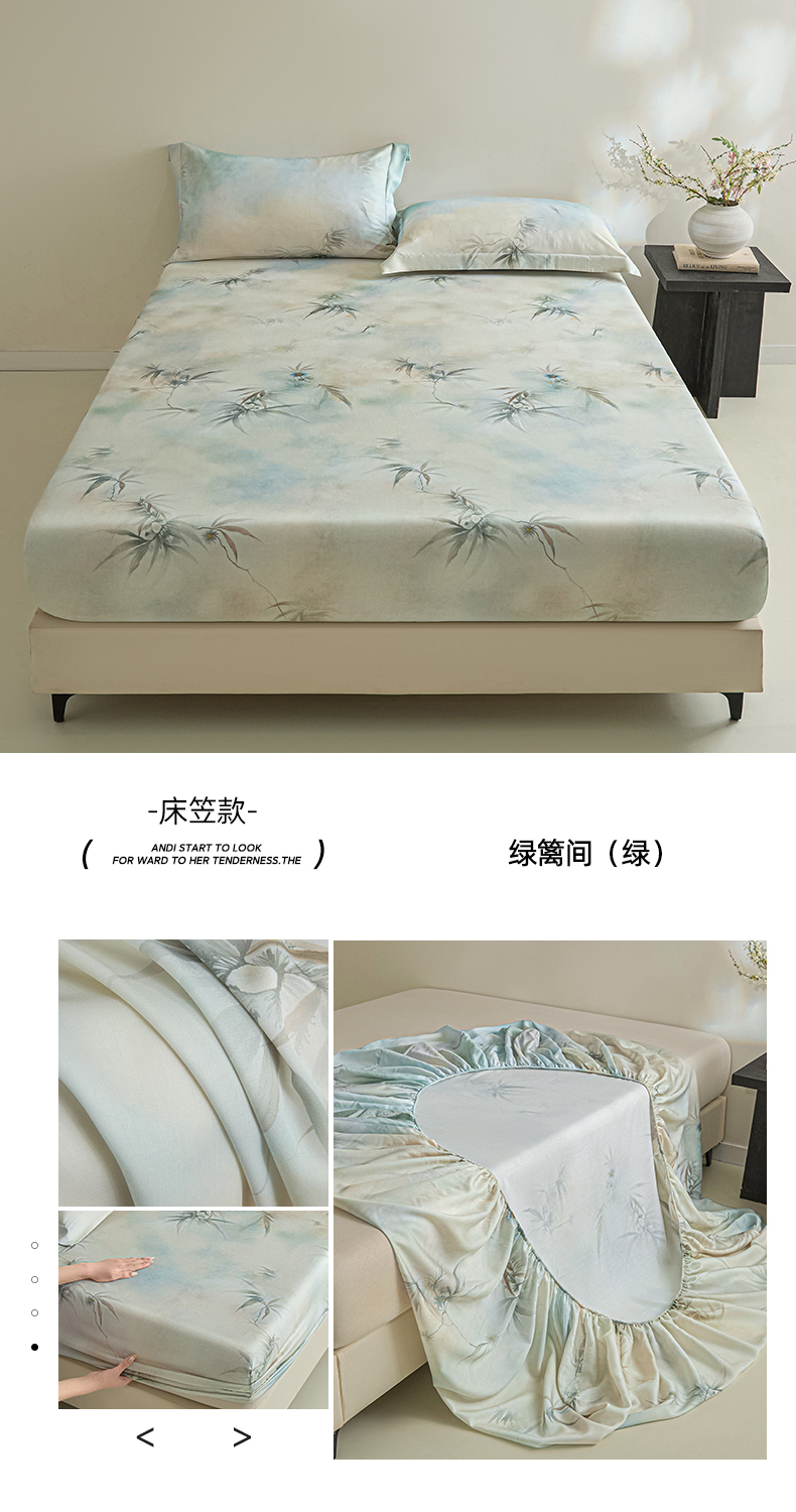 • 91家纺网 家纺一手货源 找家纺 禾时 2026春夏新款50s莱赛尔天丝床笠三件套床笠单件 绿篱间(绿)