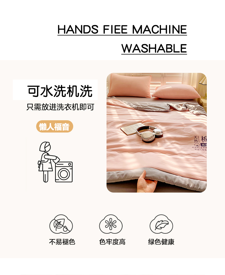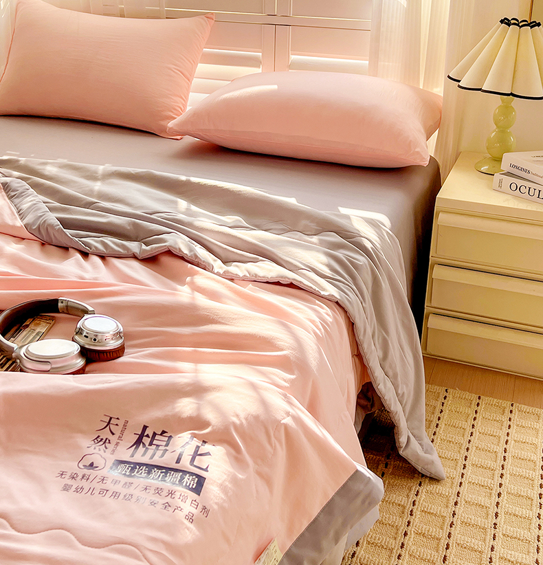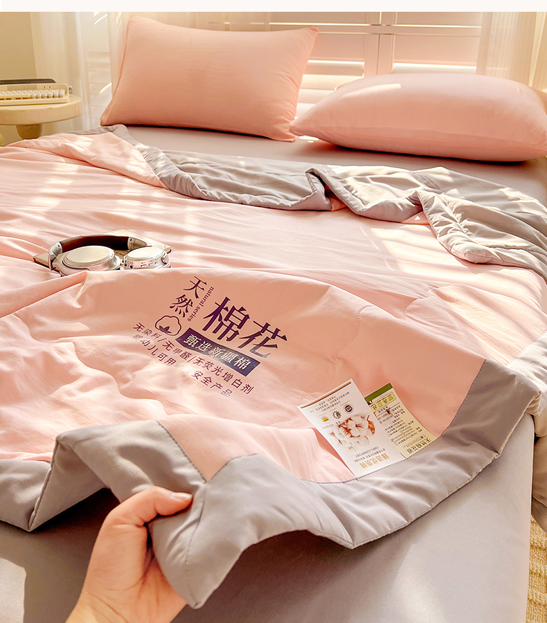 (总)易展家居 2025年新款水洗棉原棉夏被,原棉白,原棉粉,原棉灰,原棉绿
