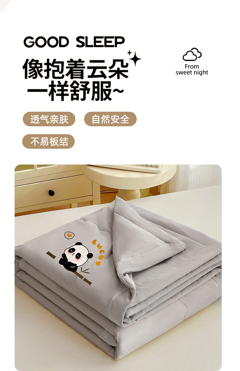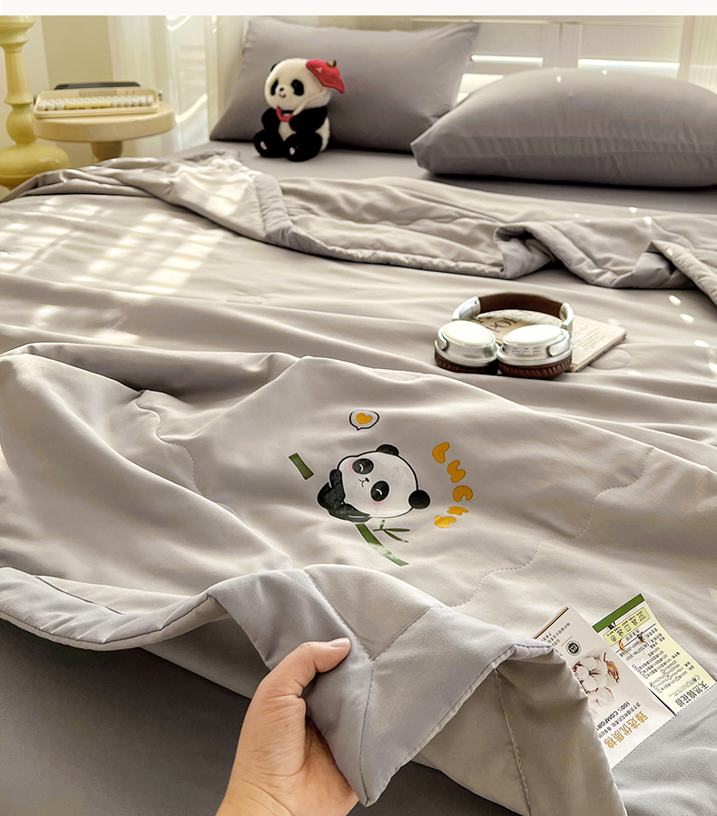 商品名称:易展家居 2026新款水洗棉新疆棉花夏被-棉花棉花+熊猫款 能猫-浅灰