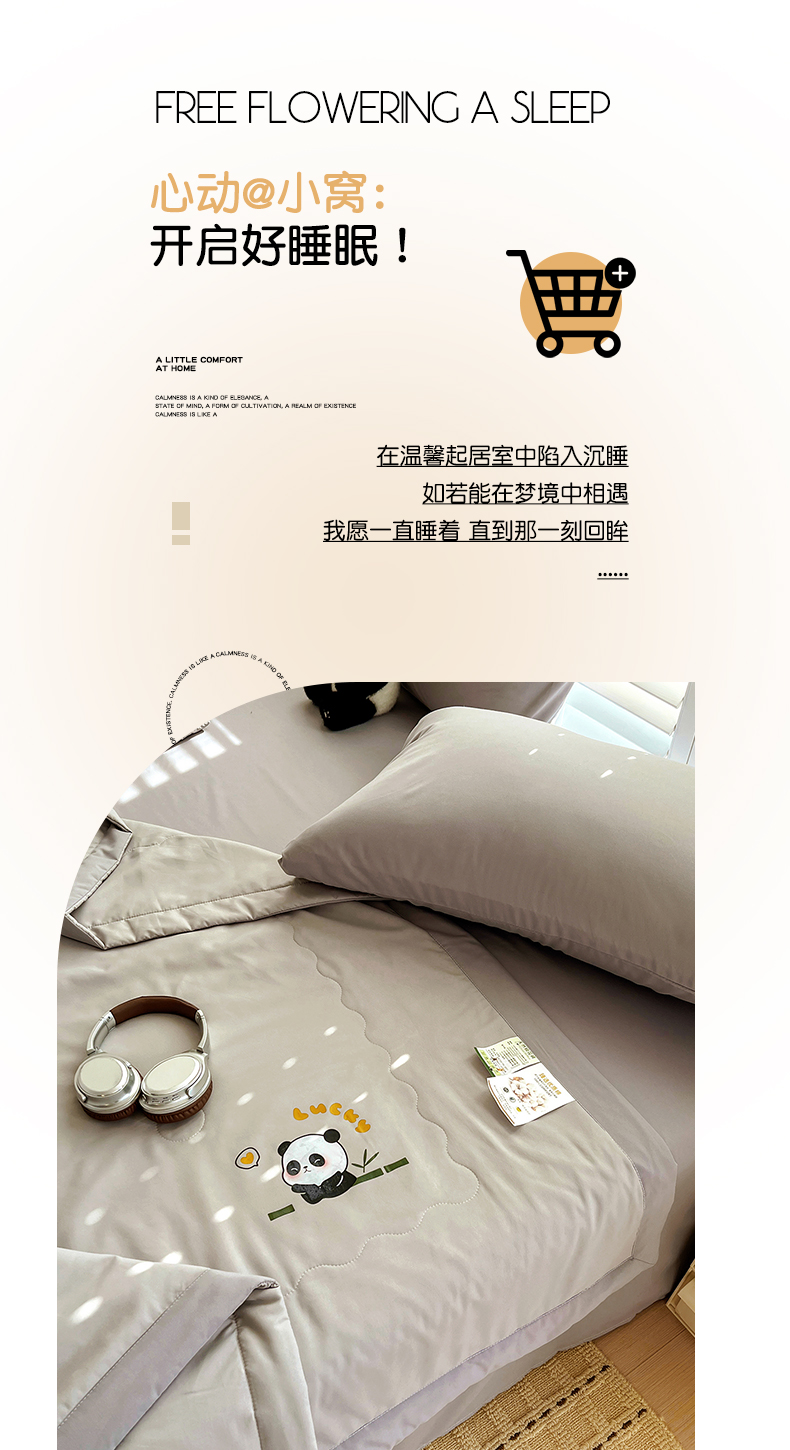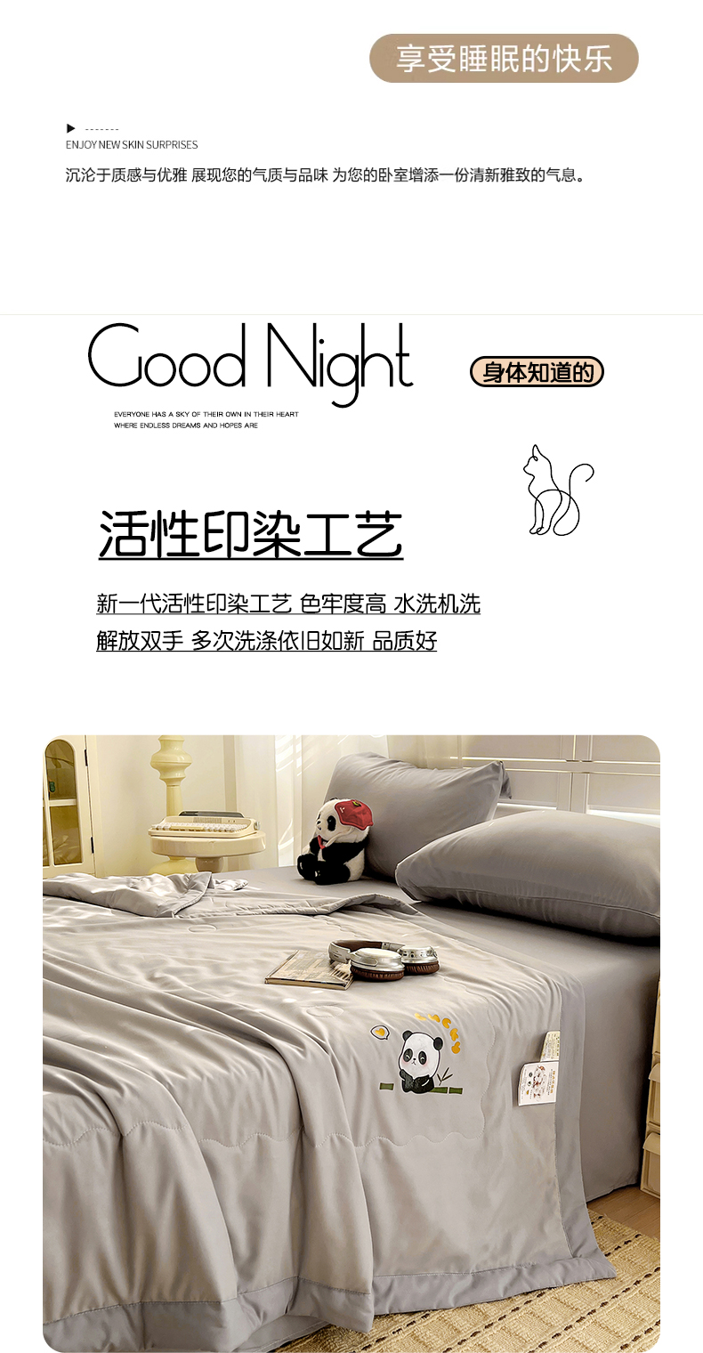 (总)易展家居 2025年新款水洗棉熊猫夏被,熊猫-奶昔白,熊猫-轻绿,熊猫-轻银粉,熊猫-轻银灰