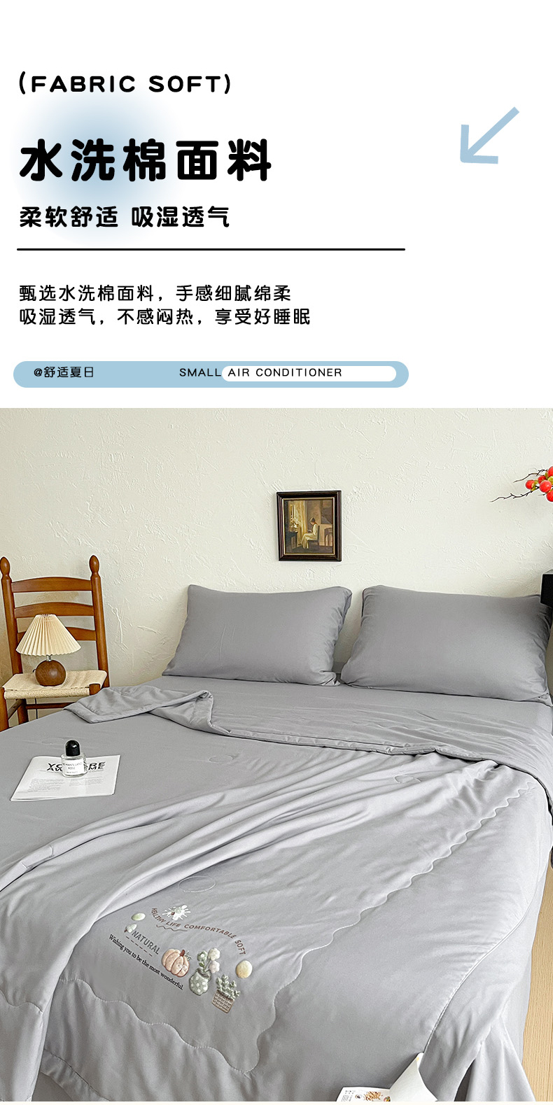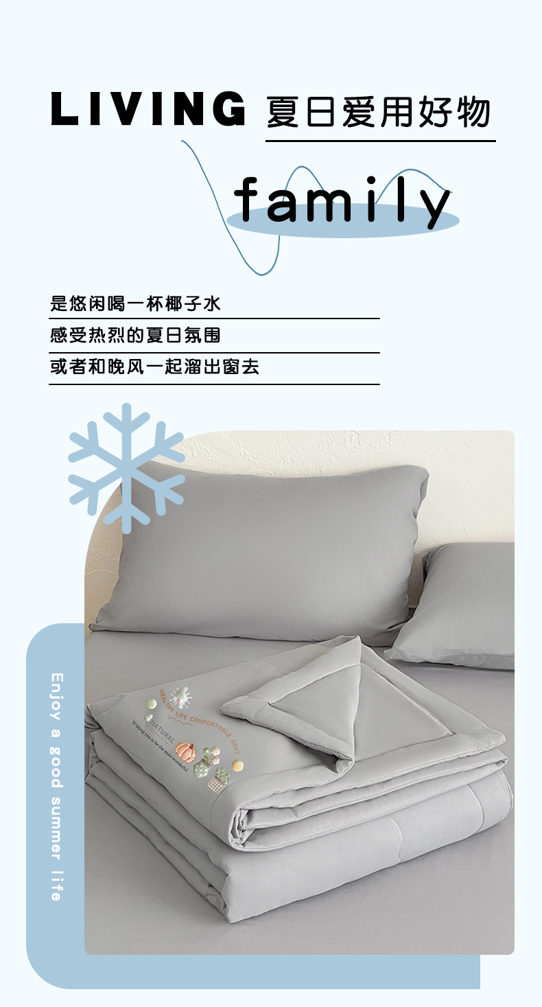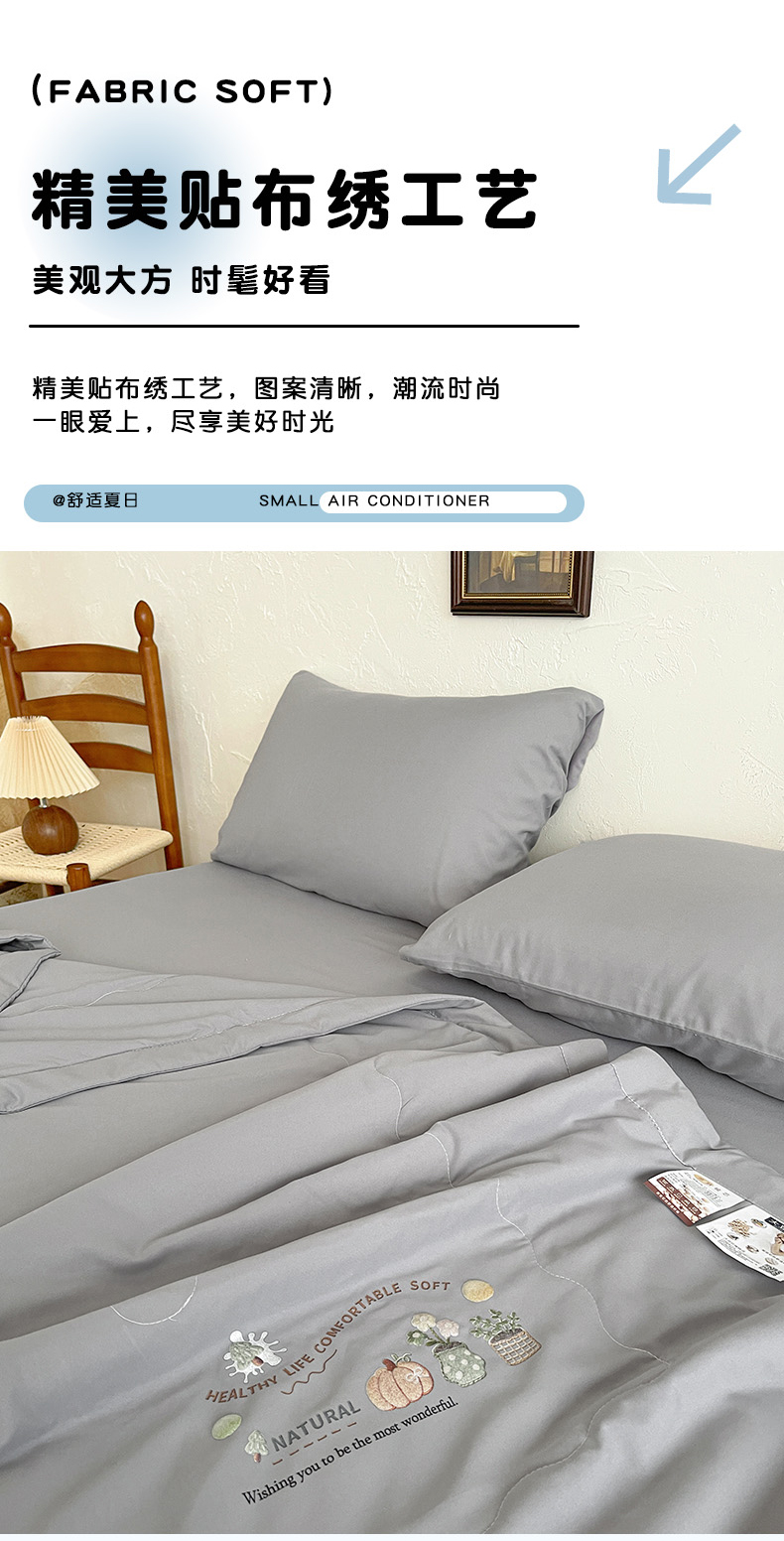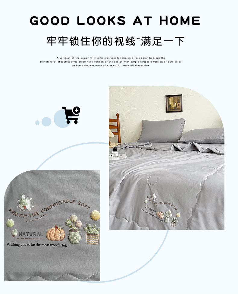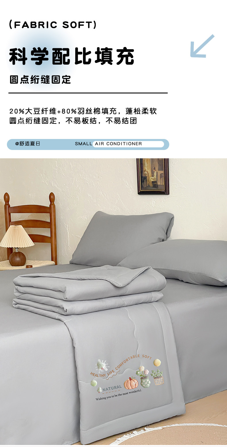商品名称:易展家居 2026新款水洗棉大豆纤维夏被 田园生活-灰色