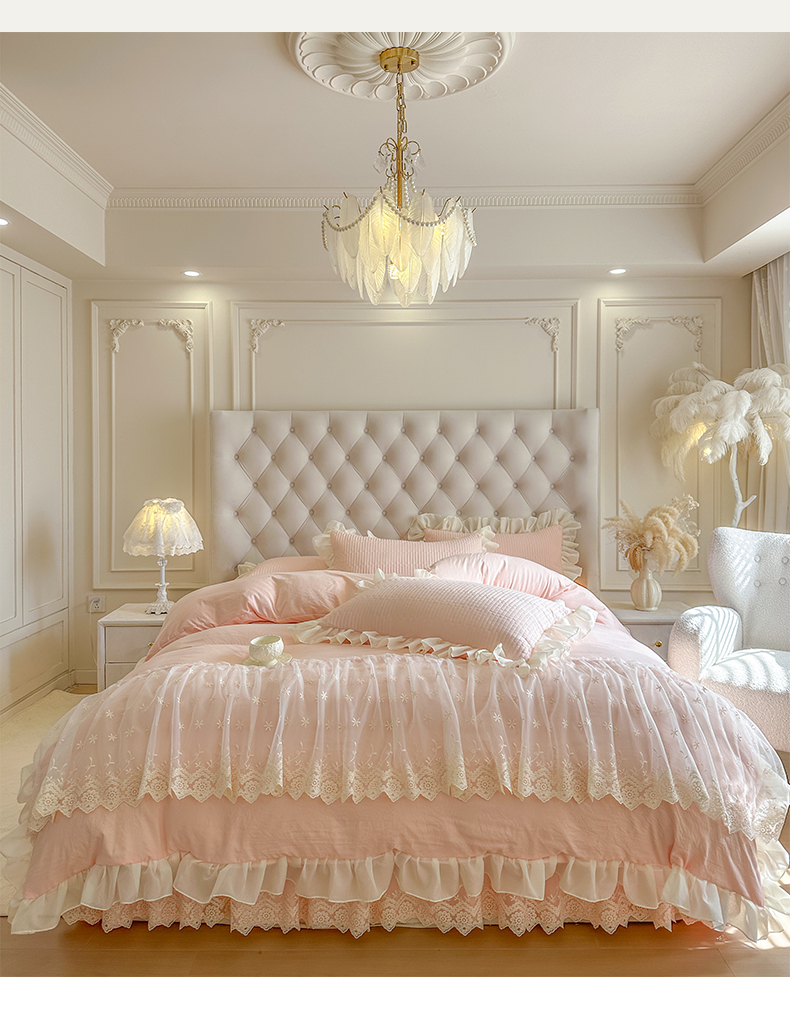 (总)瑞宝 2025新款法式花边全棉贡缎提花床裙款四件套-梦之语(控价265起),梦之语-蜜粉,梦之语-奶油白,梦之语-青柠绿,梦之语-香芋紫