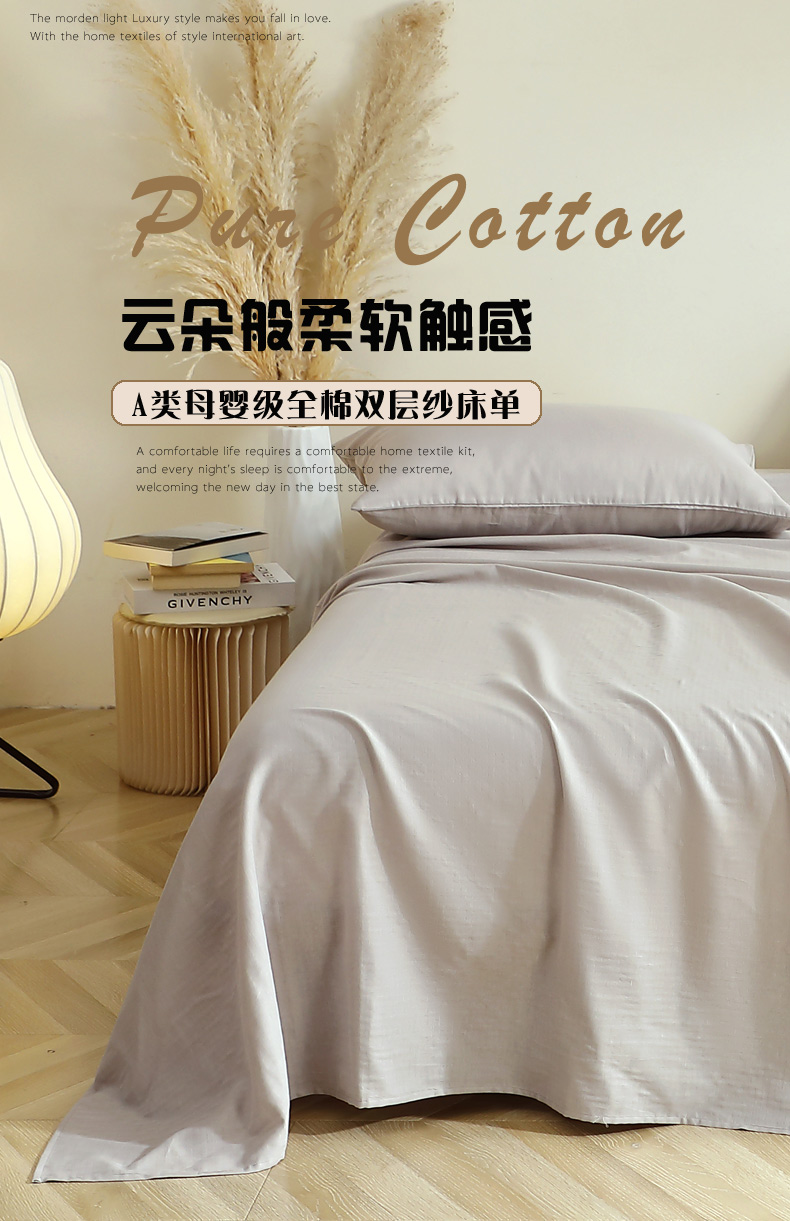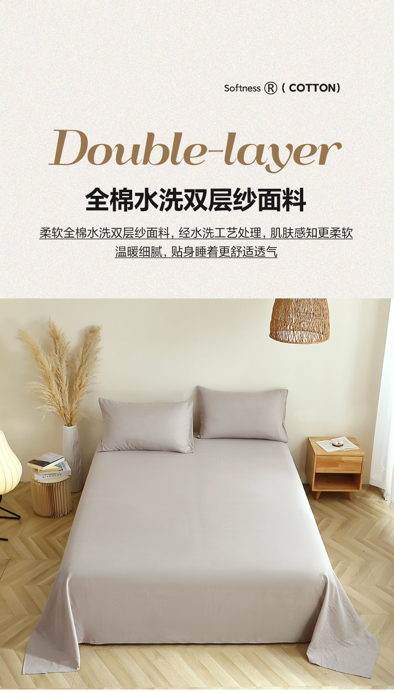 • 91家纺网 家纺一手货源 找家纺 晶缦家纺 2026新款纯棉纯色A类全棉双层纱单品床单床单单件单床单(水洗预处理)-觅琳系列 觅琳-暖藕灰