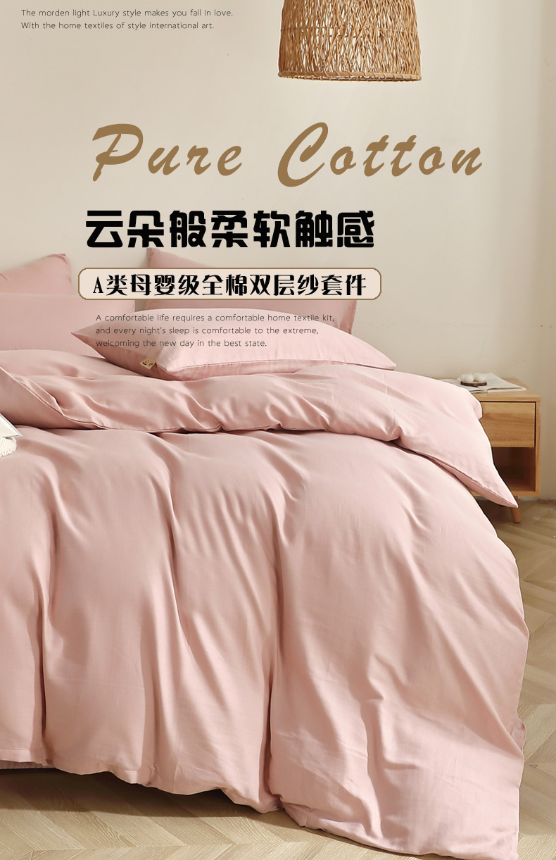 (总)晶缦家纺 2026新款纯棉纯色A类全棉双层纱四件套(水洗预处理)-觅琳系列