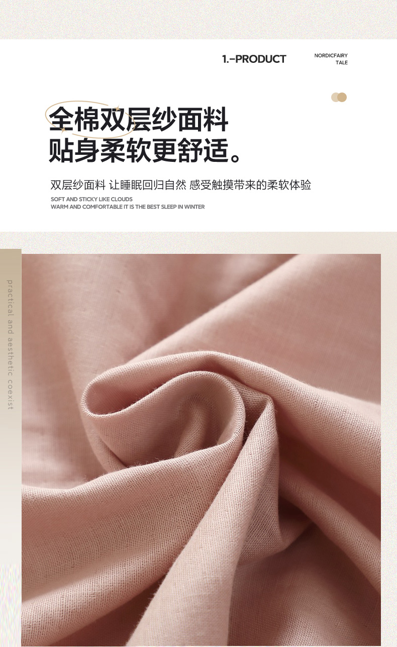 商品名称:(总)晶缦家纺 2026新款纯棉纯色A类全棉双层纱四件套(水洗预处理)-觅琳系列