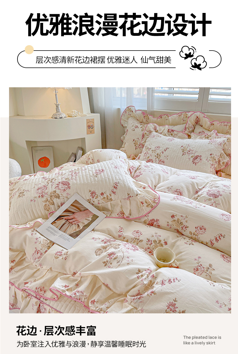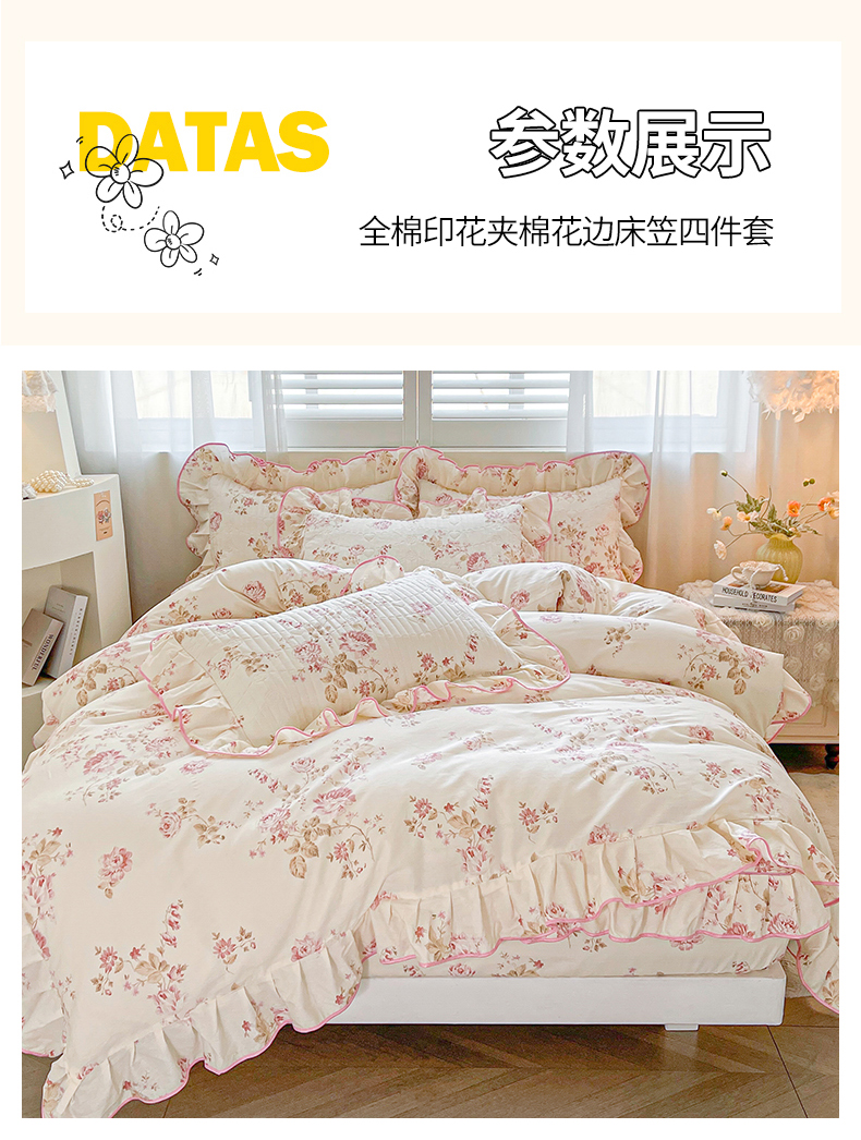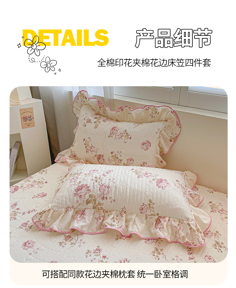 当前位置: 91家纺网 > 商品网购 > 床品套件 > 四件套 > 全棉普通四件套 > 宜凡家纺 2026新款全棉印花夹棉床笠四件套 水苏栀清