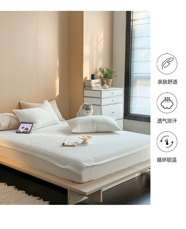 • 91家纺网 家纺一手货源 找家纺 (总)乐野家居 2026新款韩风系列高密度色织全棉纯棉绗缝床盖 松紧防滑床单,组合图仅供展示不可下单,治愈蓝,baby粉,白色,黄油色,巧克力色,芝士黄