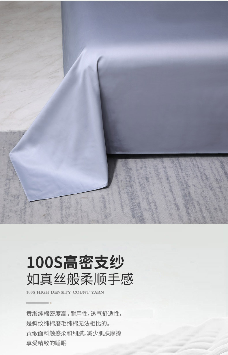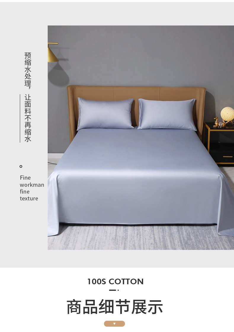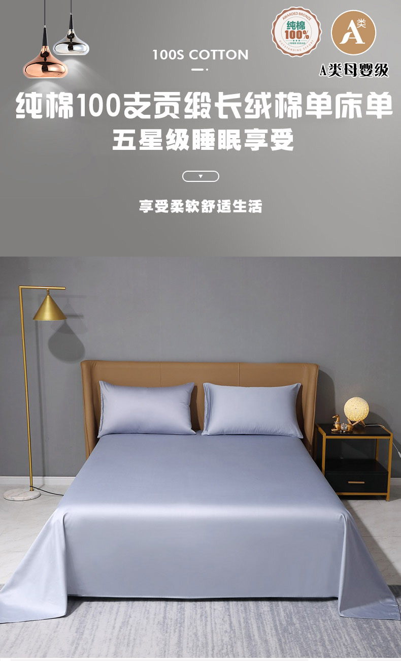 • 91家纺网 家纺一手货源 找家纺 晶缦家纺 2026新全棉A类纯棉100支贡缎长绒棉纯色多规格单床单 床单单件-绮云系列 绮云-绫兰灰