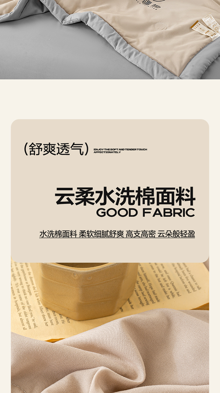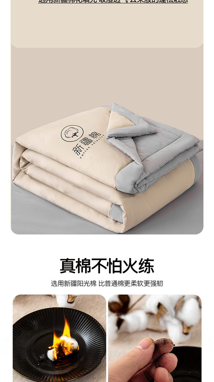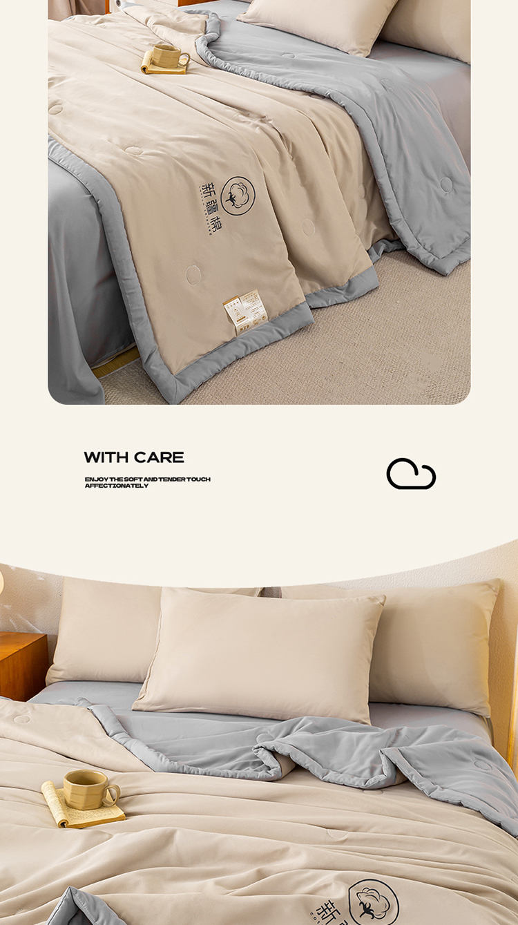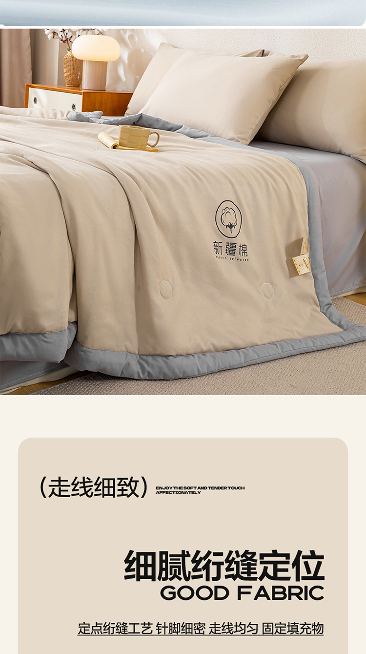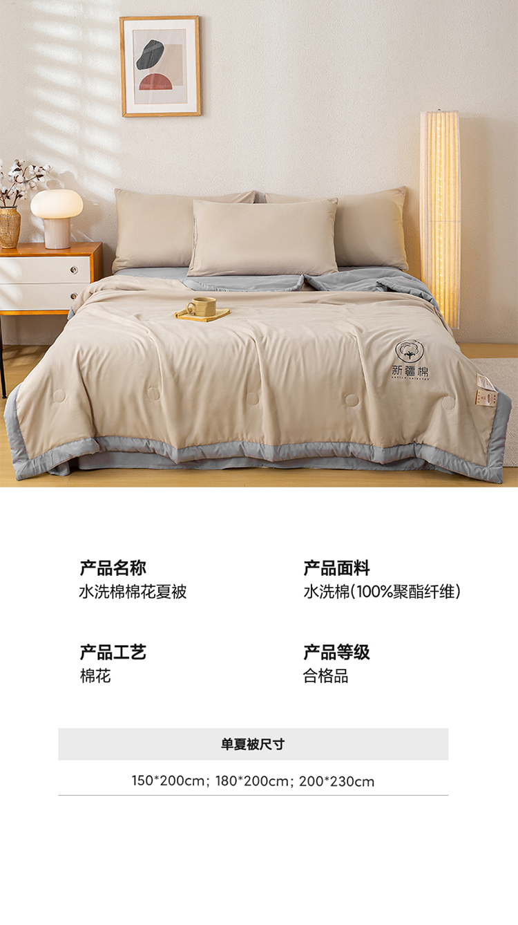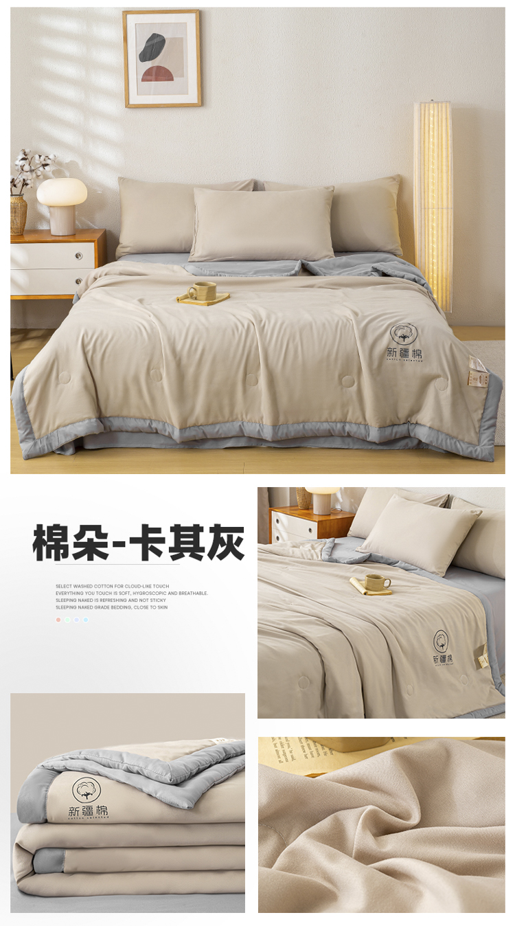商品名称:2026新款撞色双拼新疆棉花被夏被无印风水洗棉空调被夏凉被子 棉朵-卡其灰