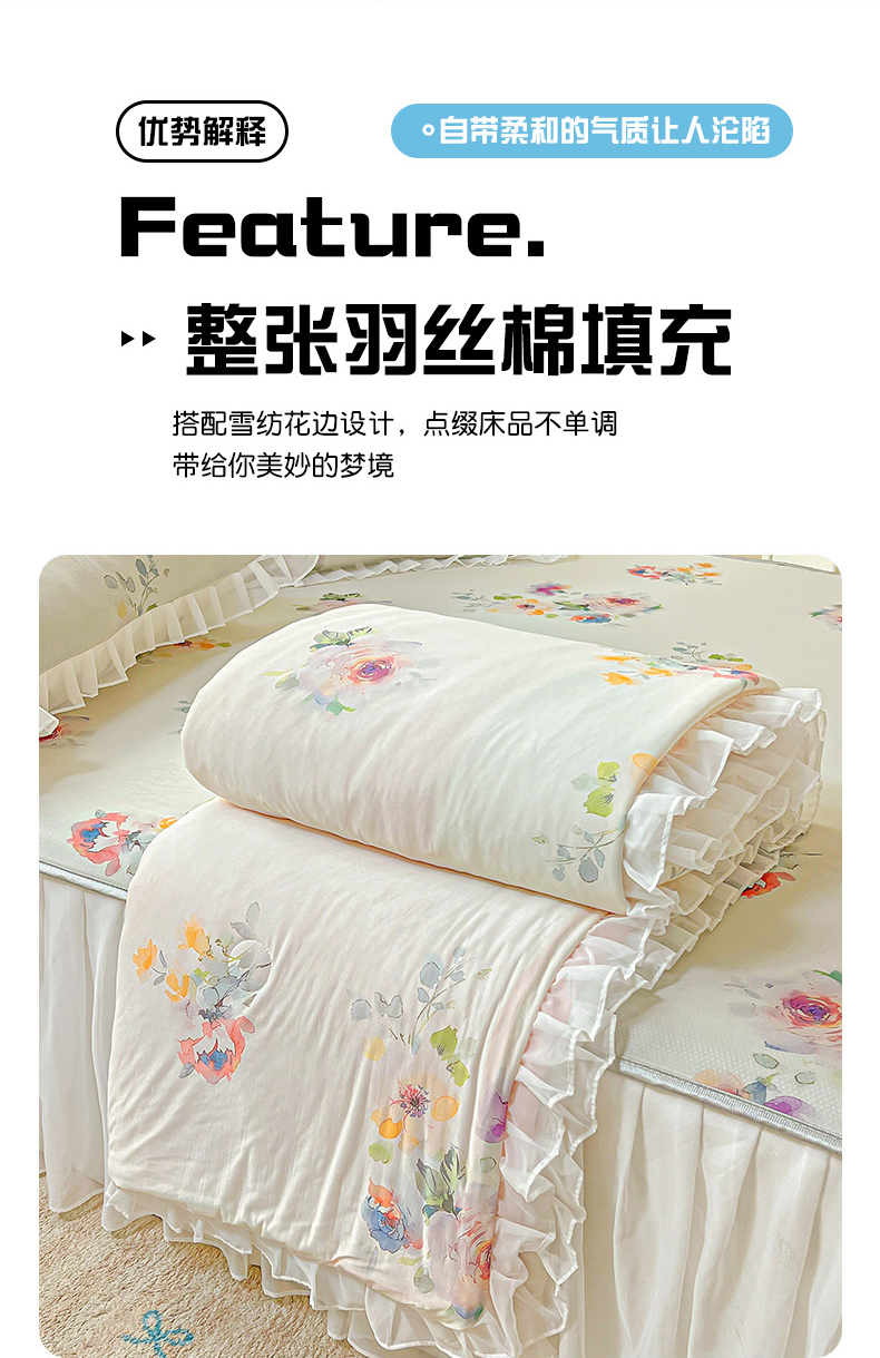 当前位置: 91家纺网 > 商品网购 > 床品套件 > 四件套 > 夏被四件套 > 栩裕纺织 2026新款(常年不断货)A类凉感丝床裙款凉席夏被四件套花边空调被三件套 蒙丽斯