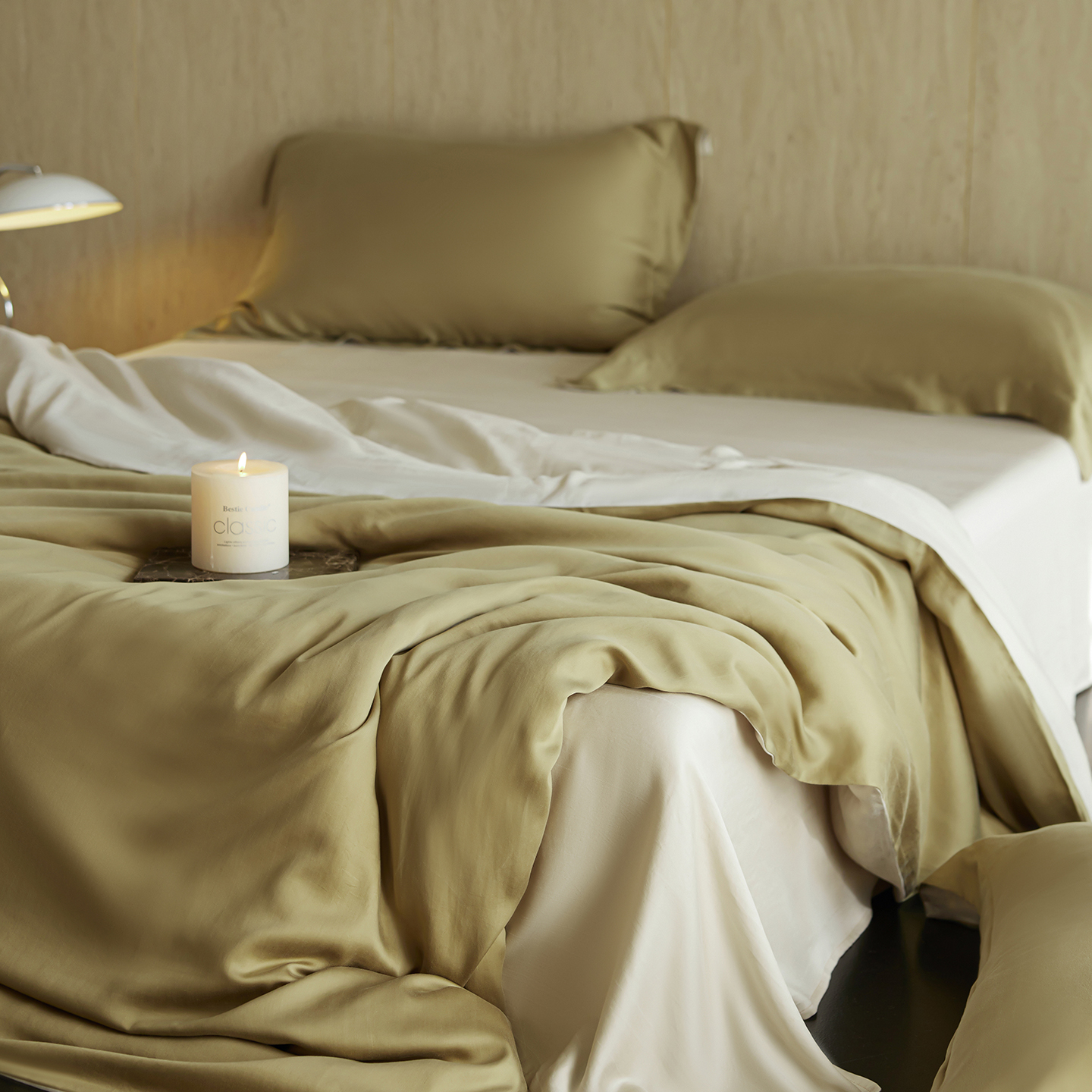 商品名称:初拾 2026新款60支水洗兰精天丝“慵懒风”四件套-软泡芙 软泡芙-茉香奶绿