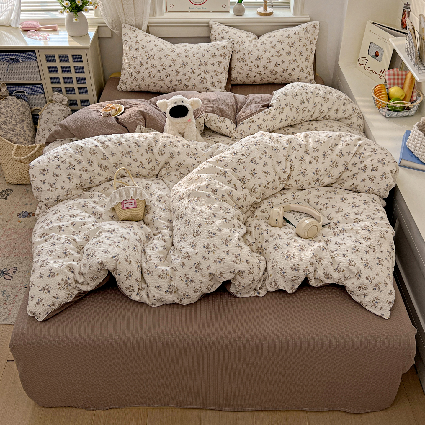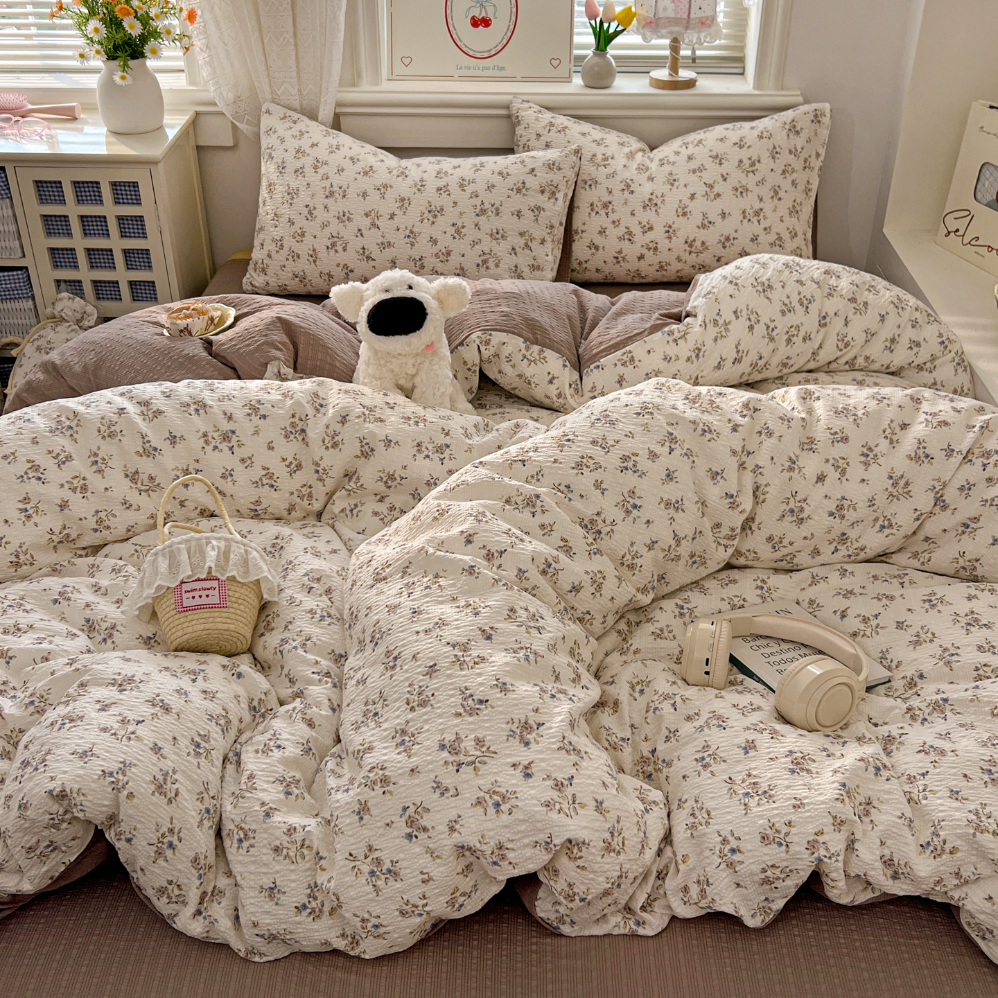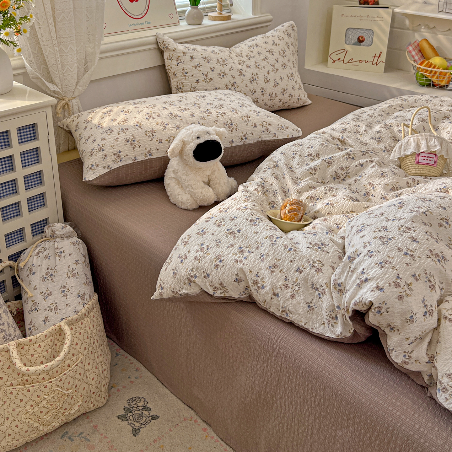 (总)暖伊家居 2026新款澳洲原单仿棉布袋四件套 硬包,腊肠狗,可可糖豆,格韵,野卉春,繁花,樱花可可,咖啡熊,芊朵,米蔷薇,清叙,樱花集,紫蝶