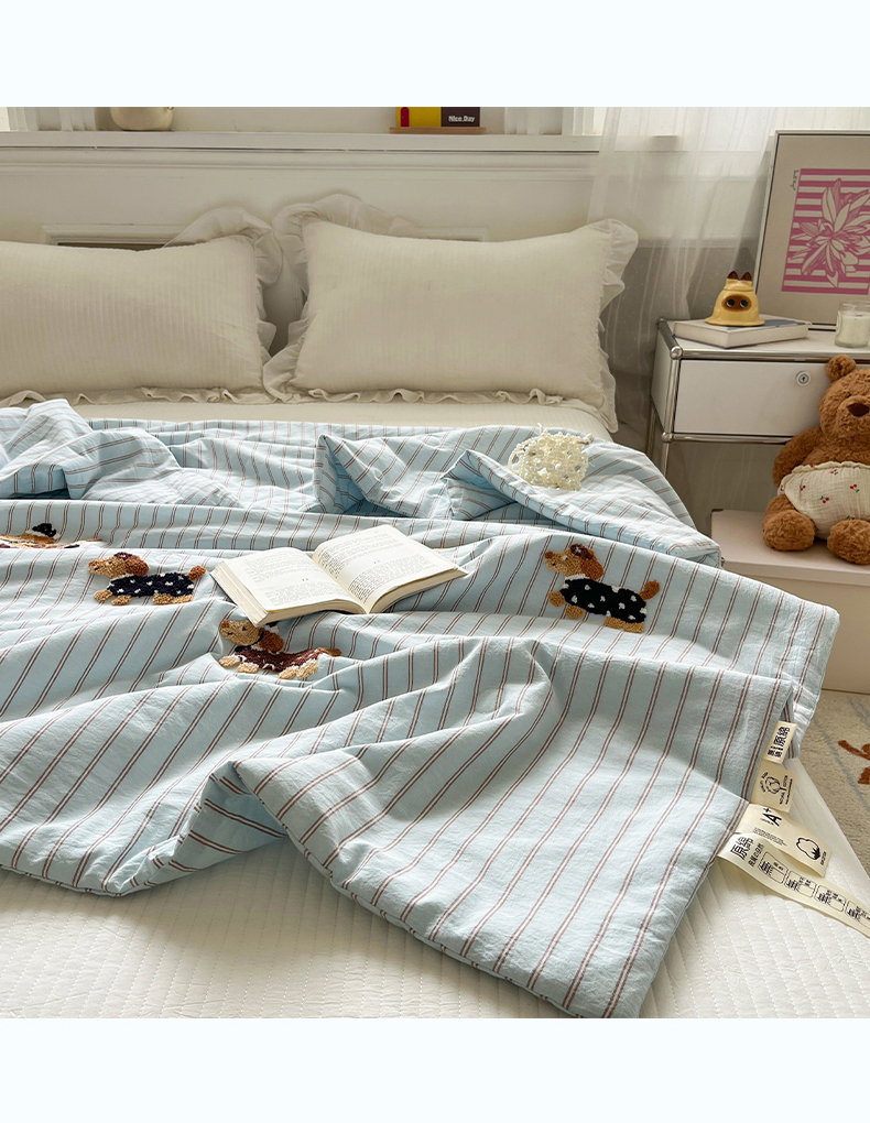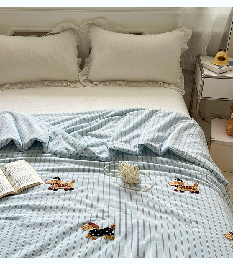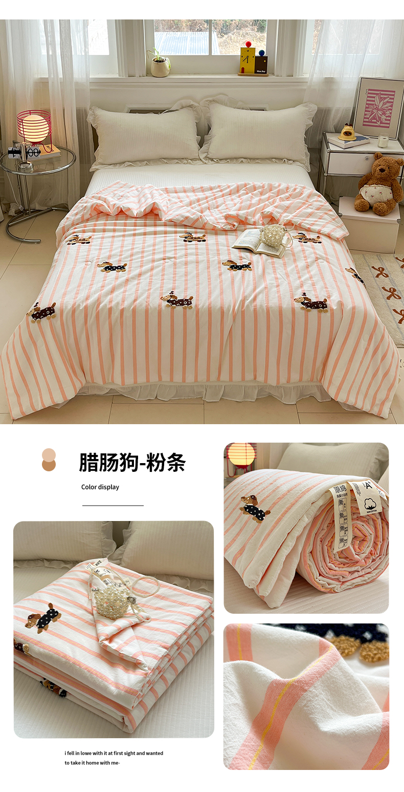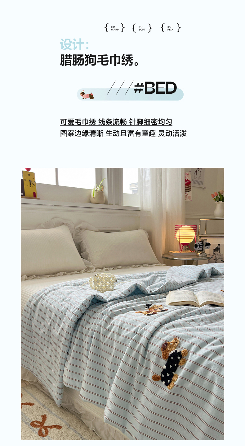 (总)一加一 2026新款全棉色织水洗棉毛巾绣大豆夏被夏凉被空调被-腊肠狗,腊肠狗-粉条,腊肠狗-海盐,腊肠狗-灰条,腊肠狗-蓝调,腊肠狗-奶白,腊肠狗-樱花
