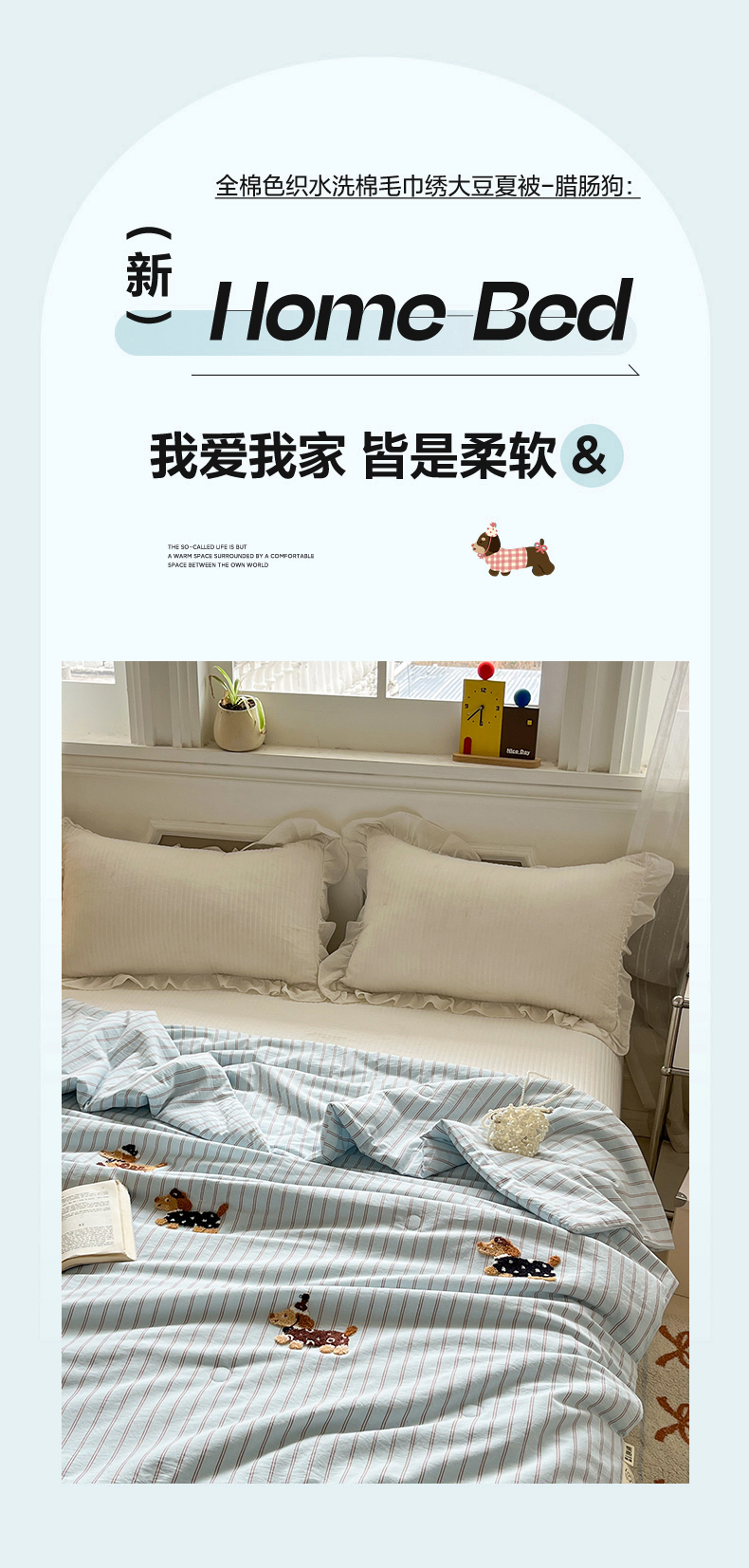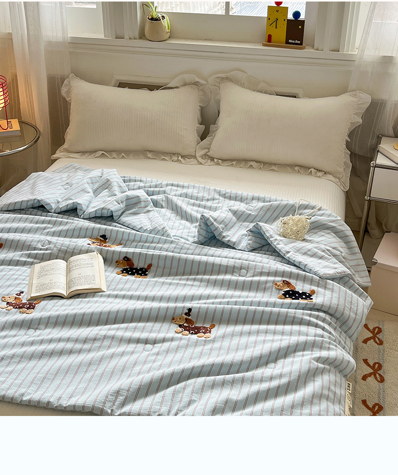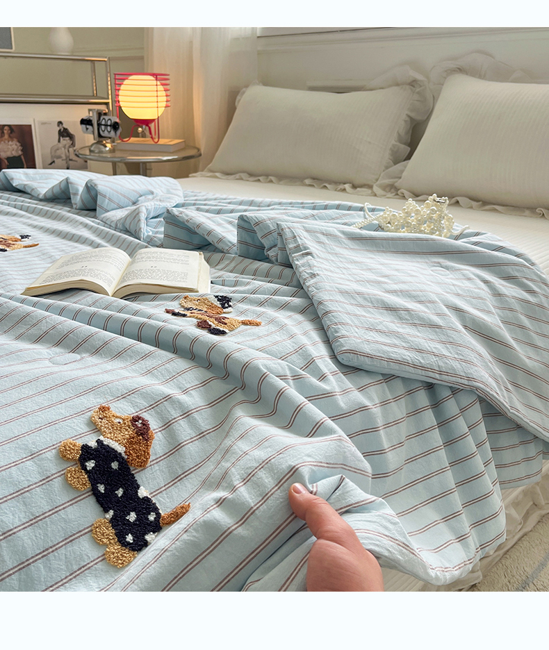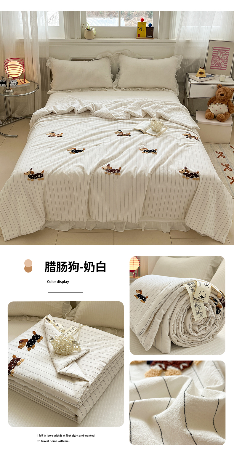 (总)一加一 2026新款全棉色织水洗棉毛巾绣大豆夏被夏凉被空调被-腊肠狗,腊肠狗-粉条,腊肠狗-海盐,腊肠狗-灰条,腊肠狗-蓝调,腊肠狗-奶白,腊肠狗-樱花