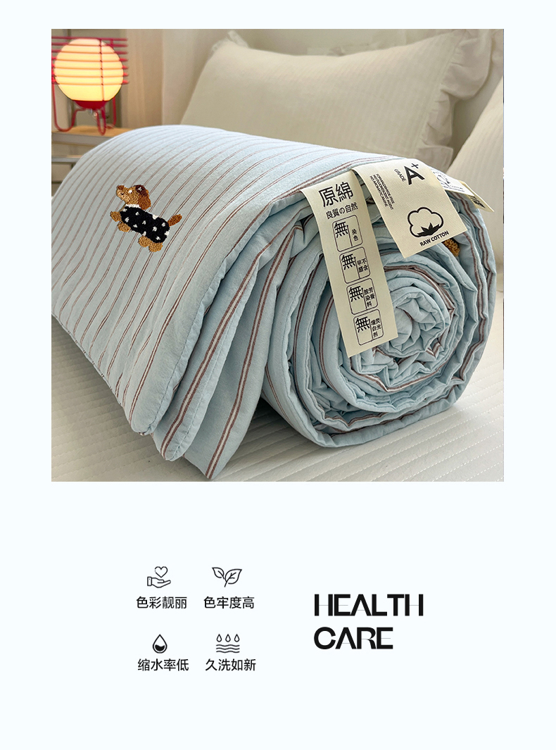 (总)一加一 2025新款全棉色织简约风艾阳绒抗菌被芯,浅兰韵律,桃之夭天,悠然时光