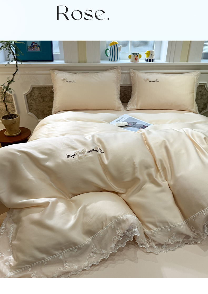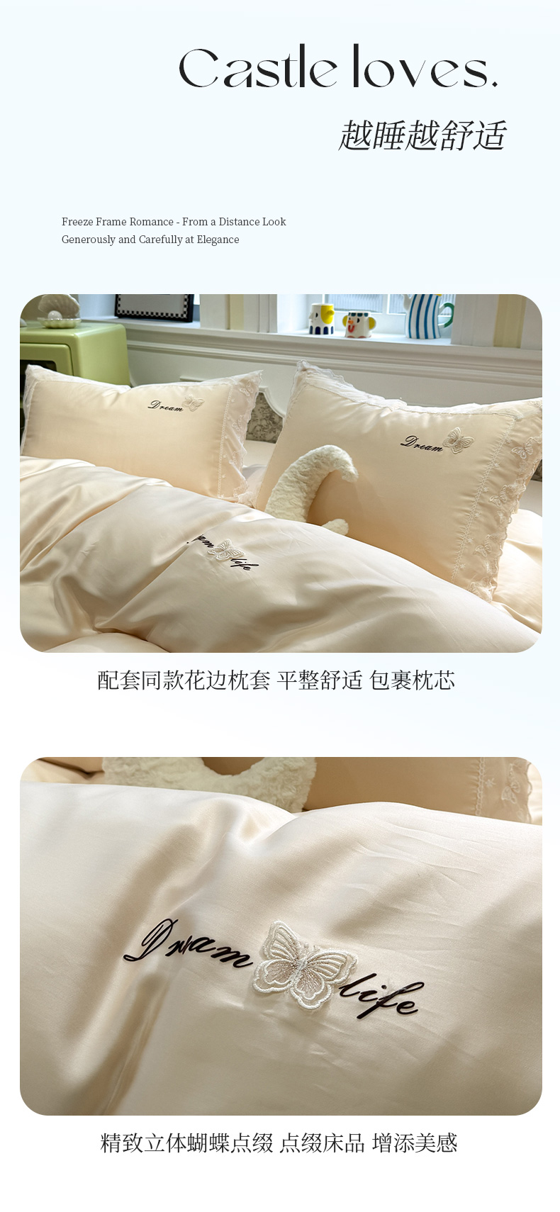 当前位置: 91家纺网 > 商品网购 > 床品套件 > 四件套 > 其它四件套 > 繁花家居 2026春夏新款冰丝蝴蝶系列凉感蕾丝花边公主风四件套-浅夏 浅夏-香槟
