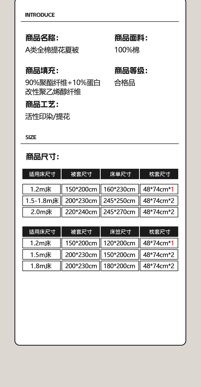 适用季节: 空调被/夏凉被