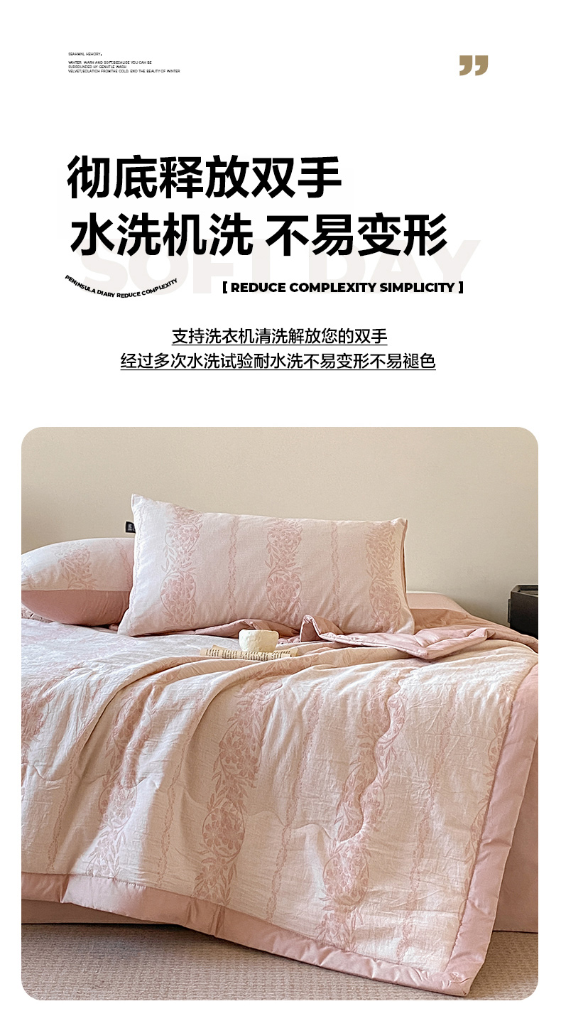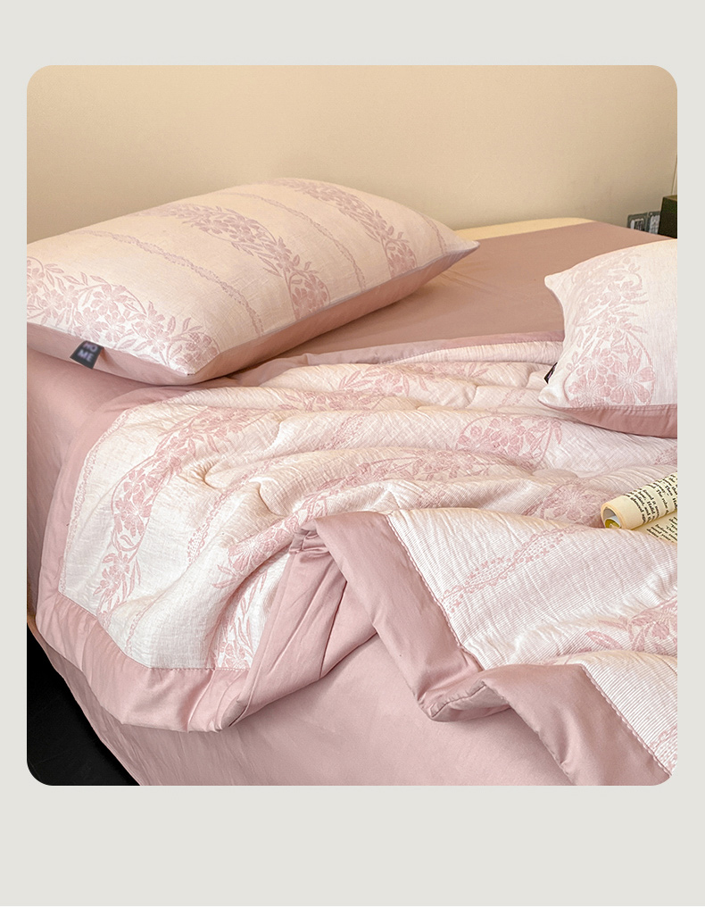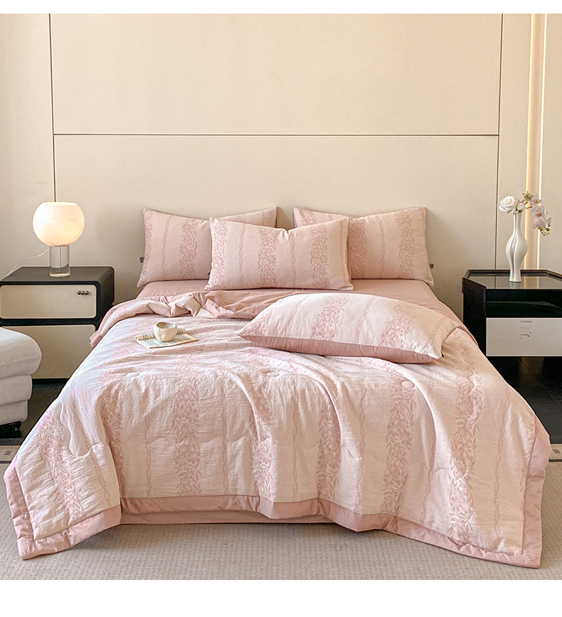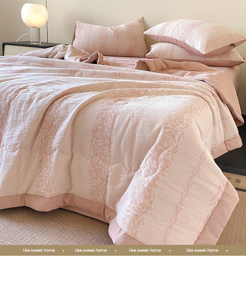 • 91家纺网 家纺一手货源 找家纺 恋人优选 2026新款全棉三层提花夏被空调被 花蔓吟-粉