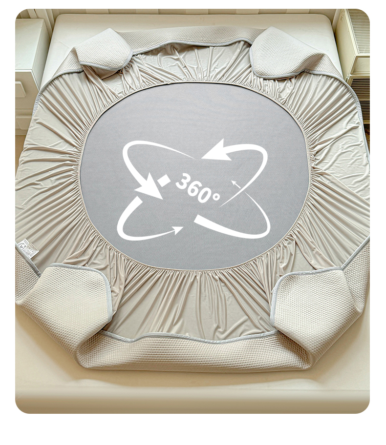 • 91家纺网 家纺一手货源 找家纺 雯豆家纺 2026春夏新款凉感丝豆豆床笠三件套加厚三明治床垫保护套 凉感丝豆豆床笠-莫奈咖
