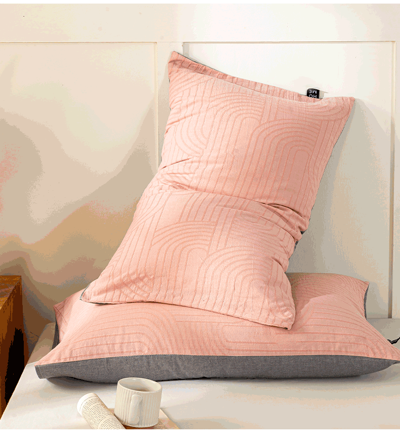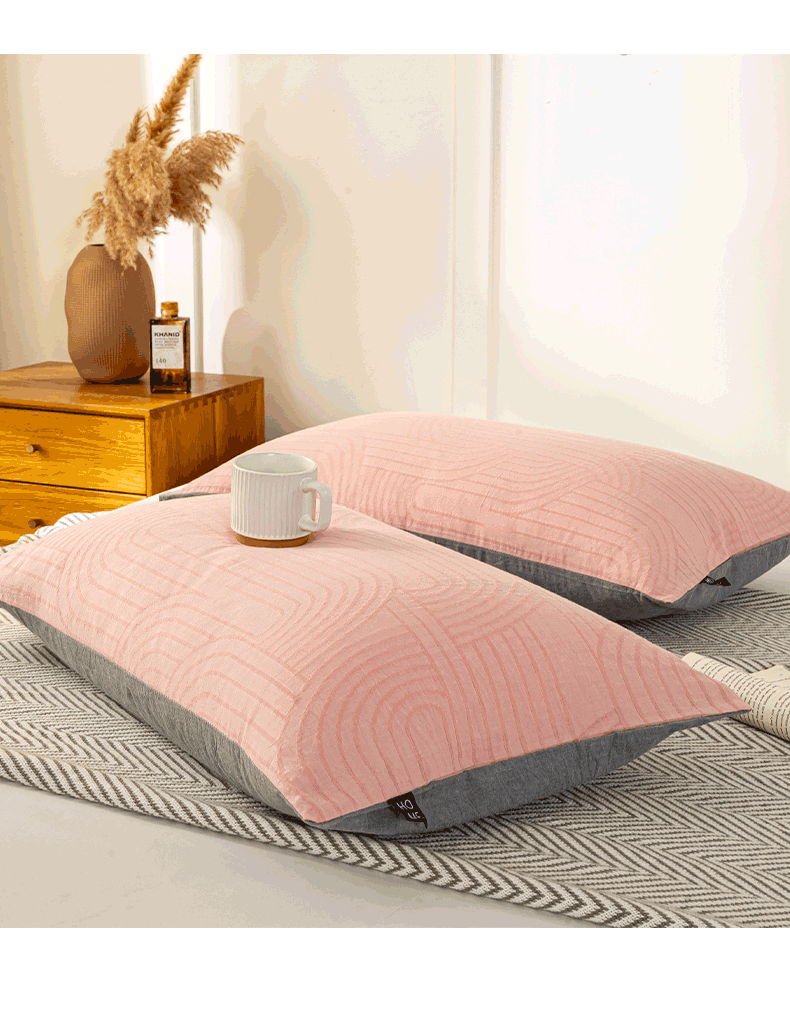 恋人优选 2026新款全棉提花枕套 浮光粉