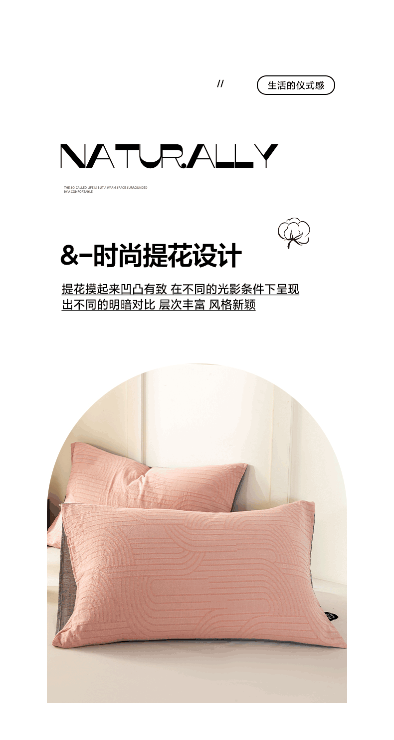 商品名称:恋人优选 2026新款全棉提花枕套 浮光粉