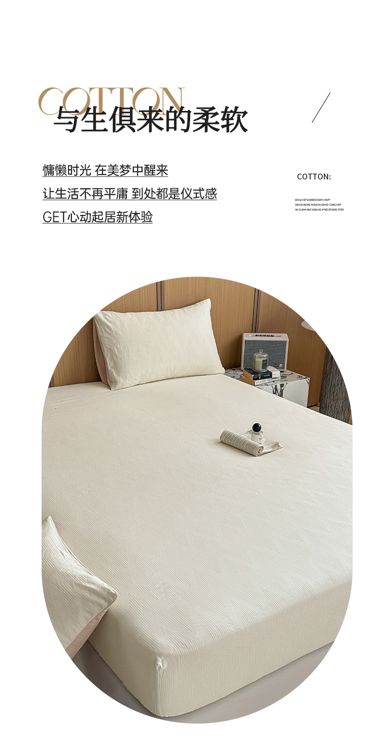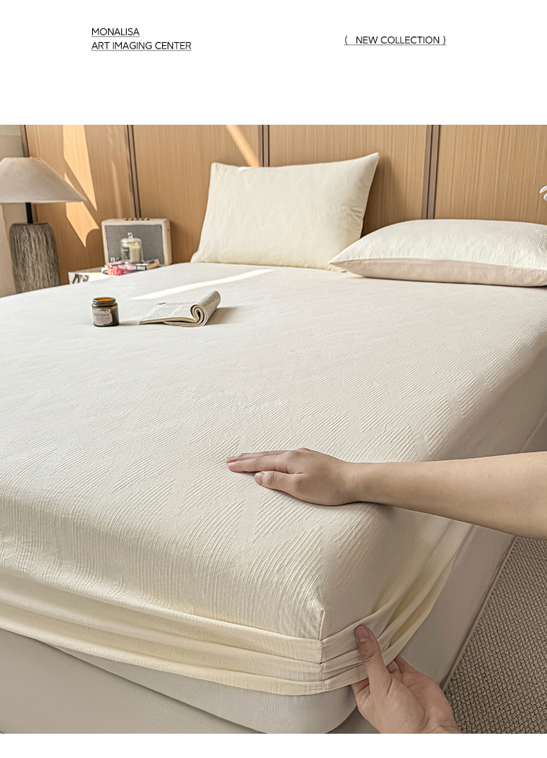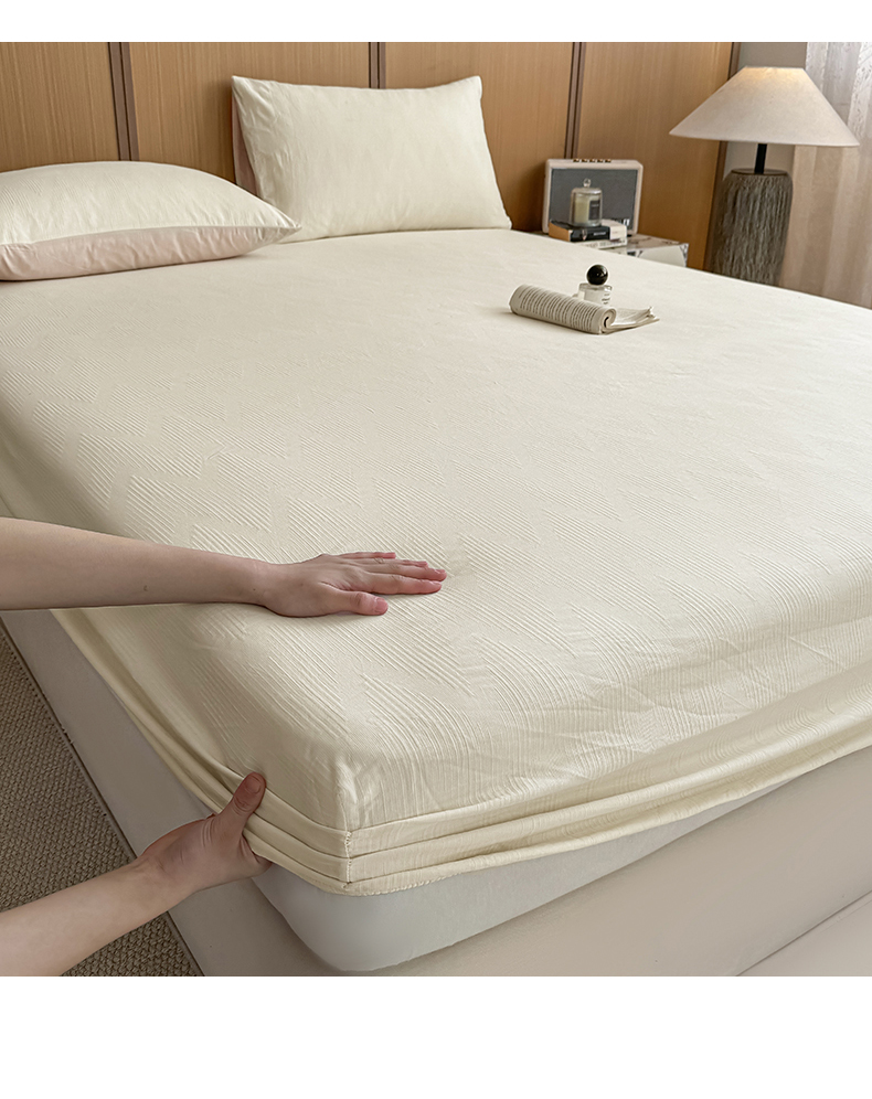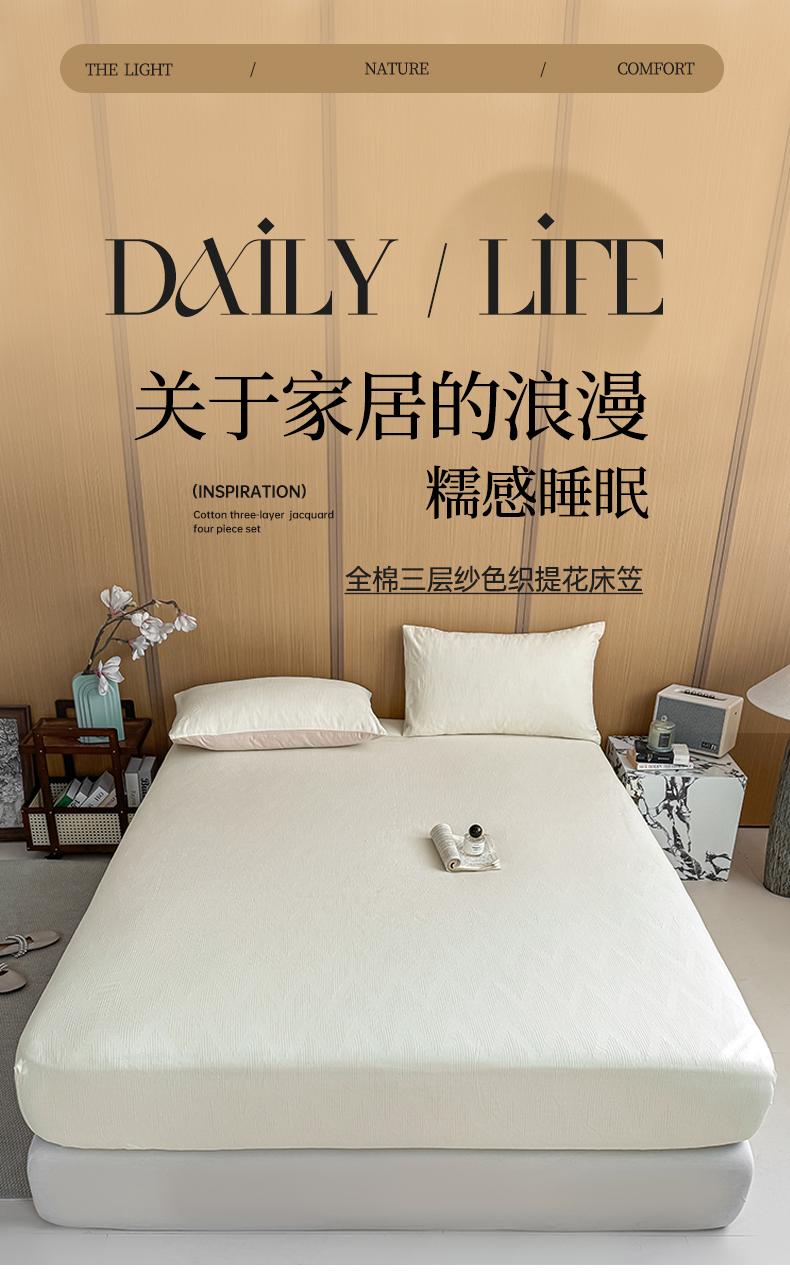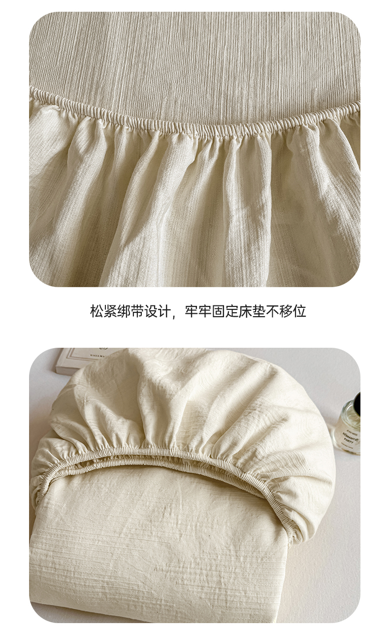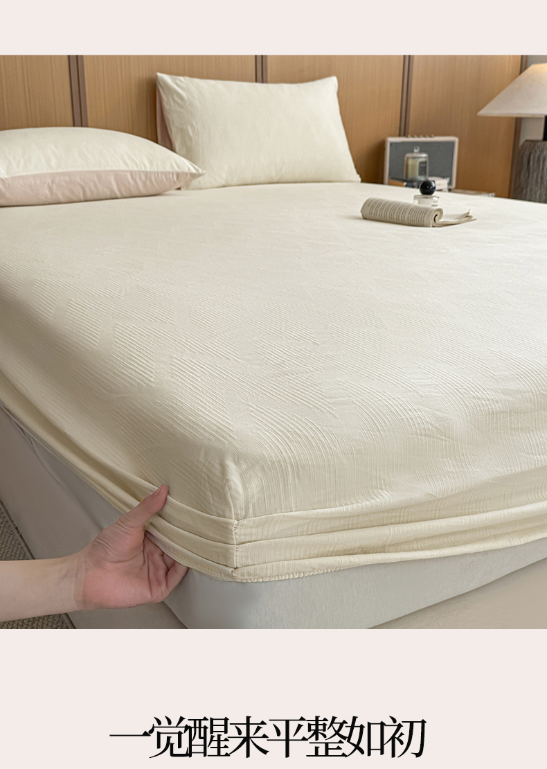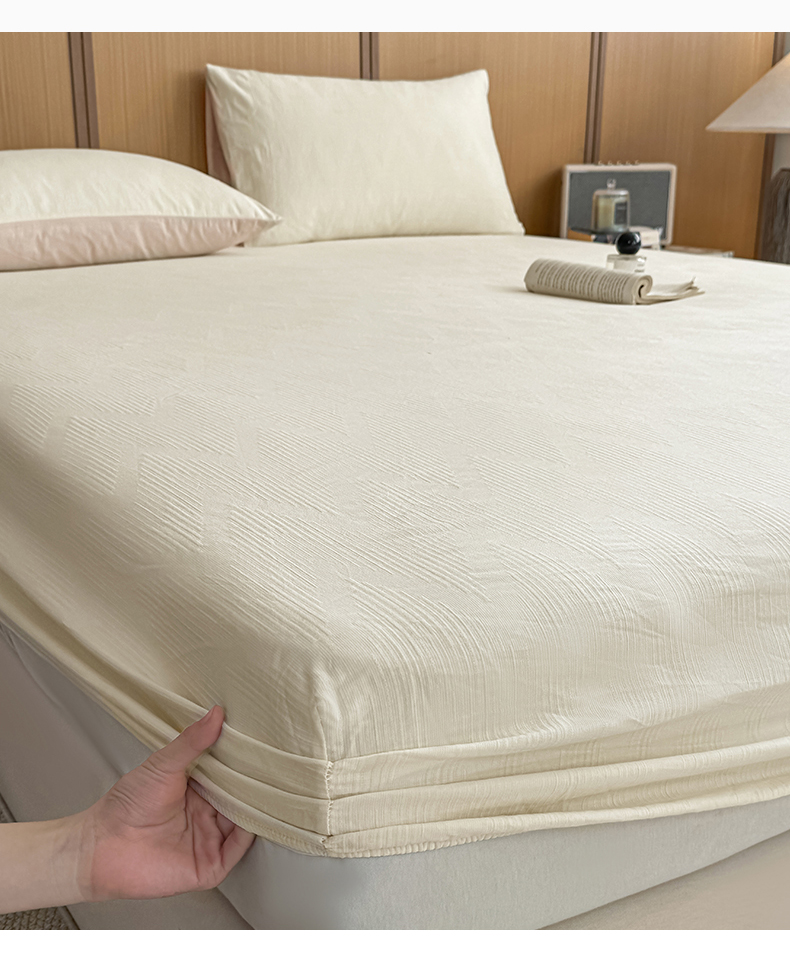 • 91家纺网 家纺一手货源 找家纺 灰鲸 2026新款全棉纯棉三层纱色织提花床笠单品床笠床笠单件 影韵-杏仁奶霜