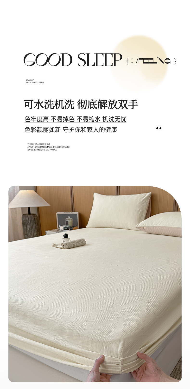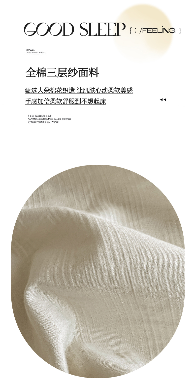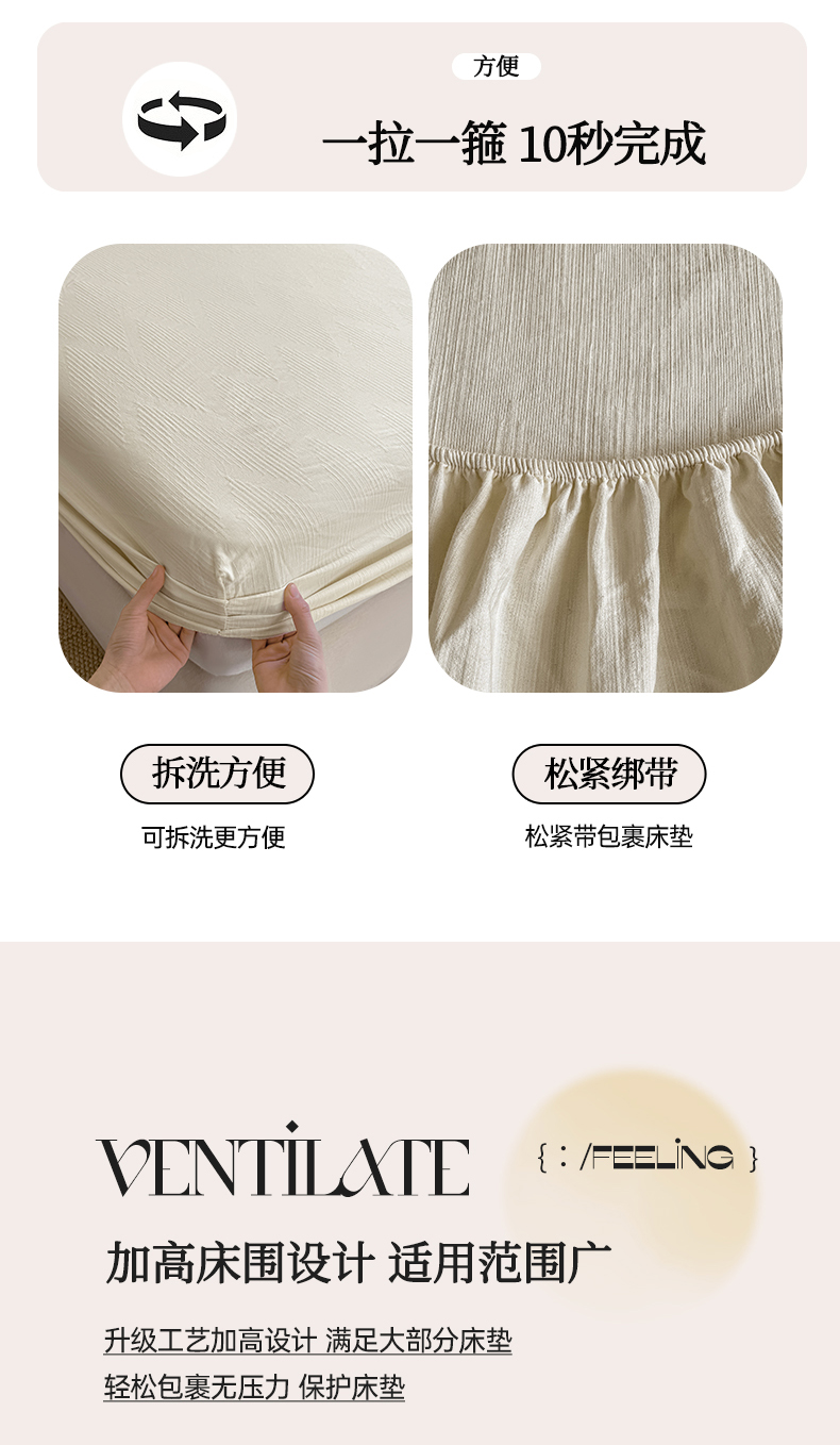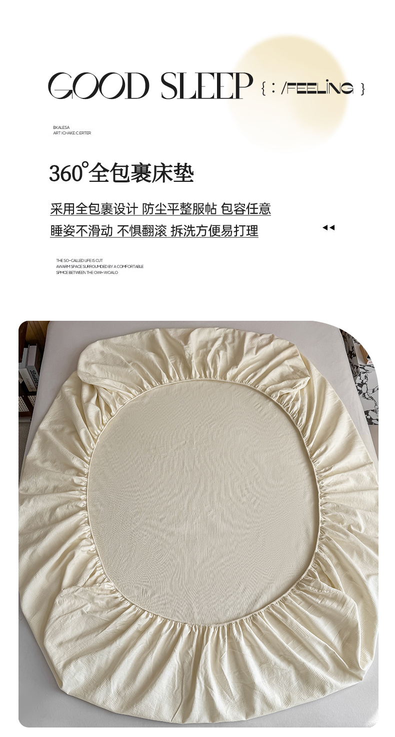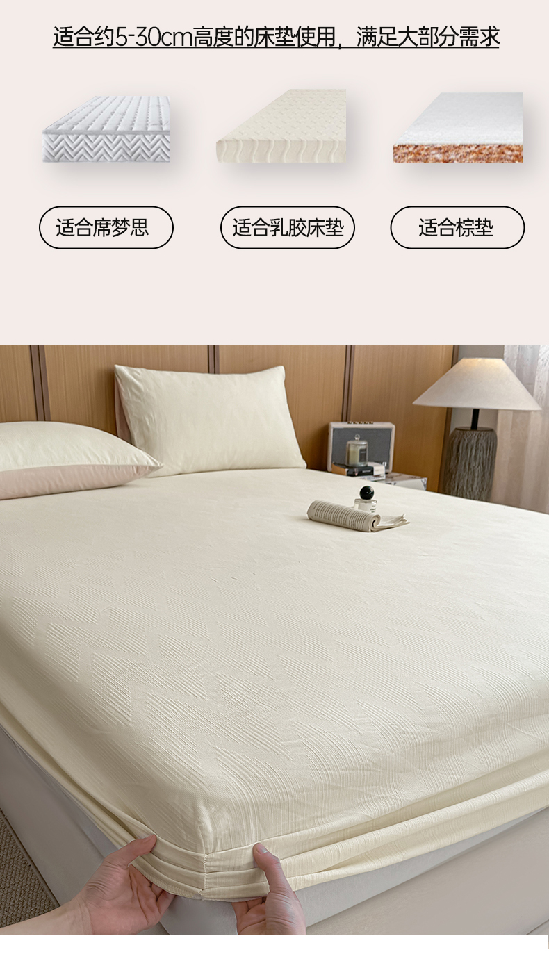 • 91家纺网 家纺一手货源 找家纺 灰鲸 2026新款全棉纯棉三层纱色织提花床笠单品床笠床笠单件 影韵-杏仁奶霜