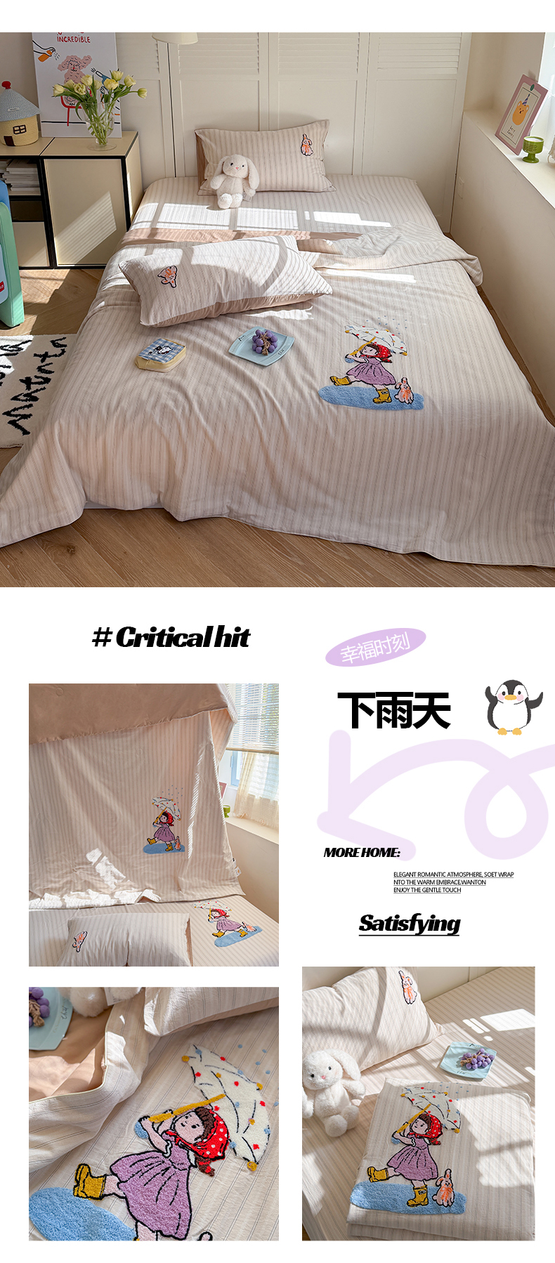 • 91家纺网 家纺一手货源 找家纺 (总)暖生活 2026新款全棉水洗棉毛巾绣夏被春秋被四件套,组合图仅做展示不可下单,KT日记,蓝鲸梦,墨镜小狗,下雨天,小企鹅,阅读星人