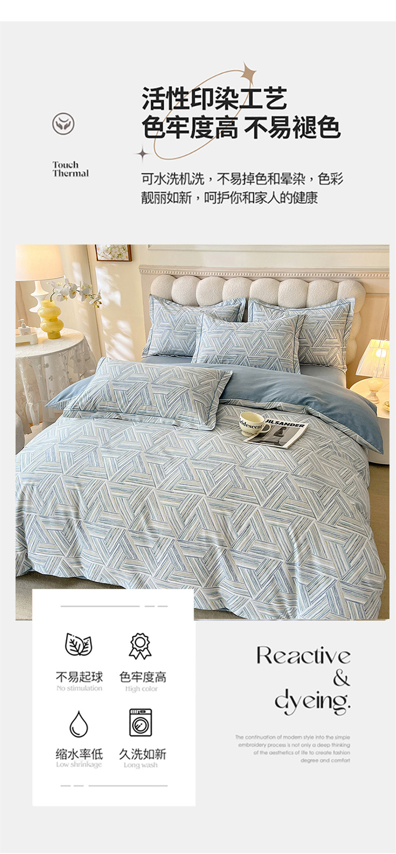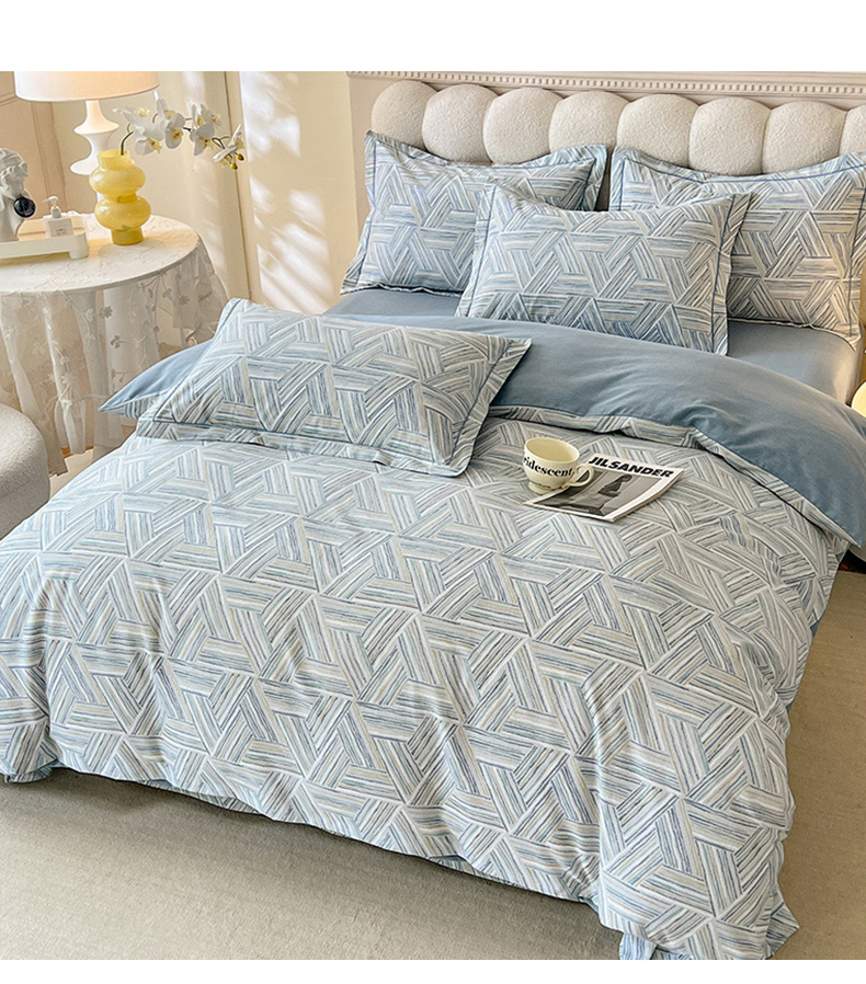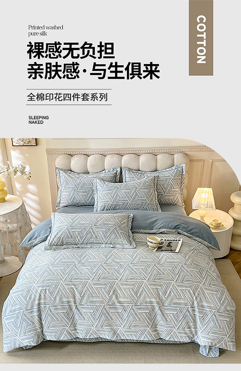 当前位置: 91家纺网 > 商品网购 > 床品套件 > 四件套 > 全棉普通四件套 > 幸嘉轩 2025新款全棉秋冬加厚保暖喷气磨毛纯棉印花四件套 曼迪-蓝