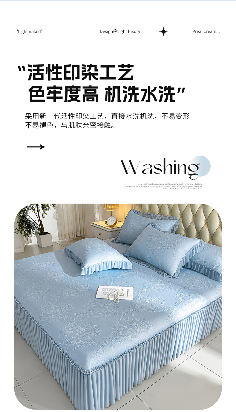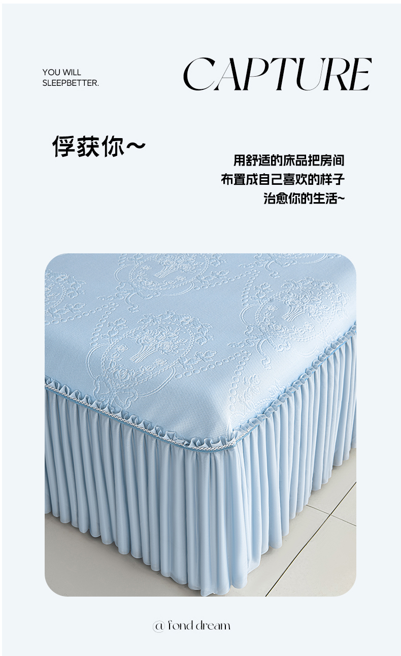 (总)梦之星 2026新款提花面料530克PE凉感因子冰豆豆床裙三件套,漫花-粉,漫花-灰,漫花-蓝,漫花-绿,山水-粉,山水-灰,山水-蓝,山水-绿