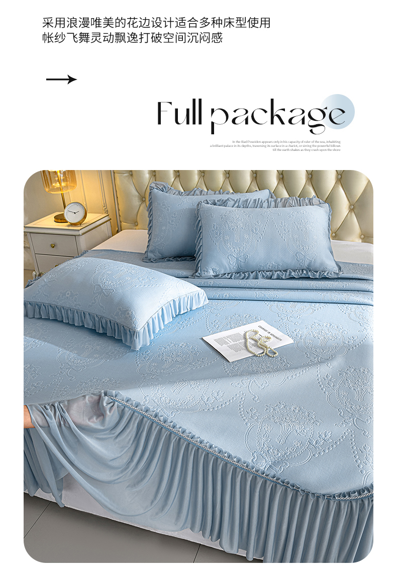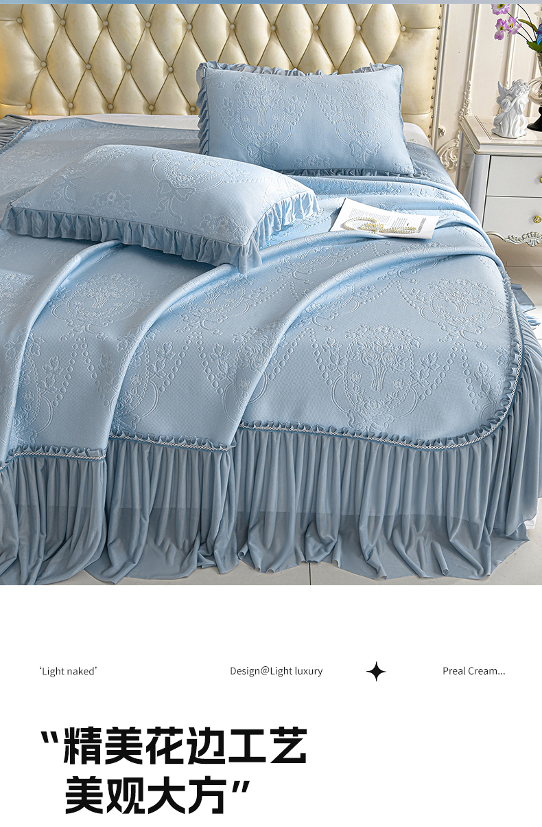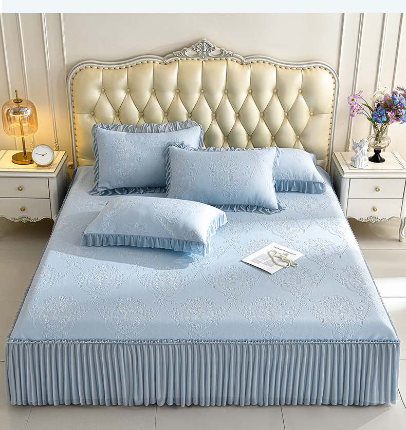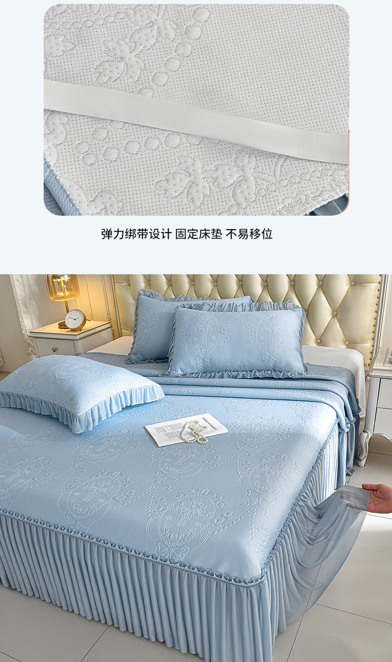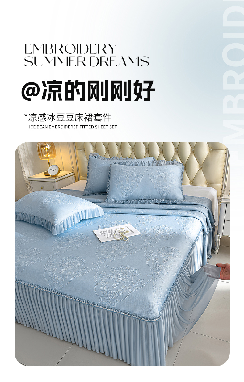 2026新款PE聚乙烯中分子凉感冰感凉豆豆床裙三件套欧式-蓝