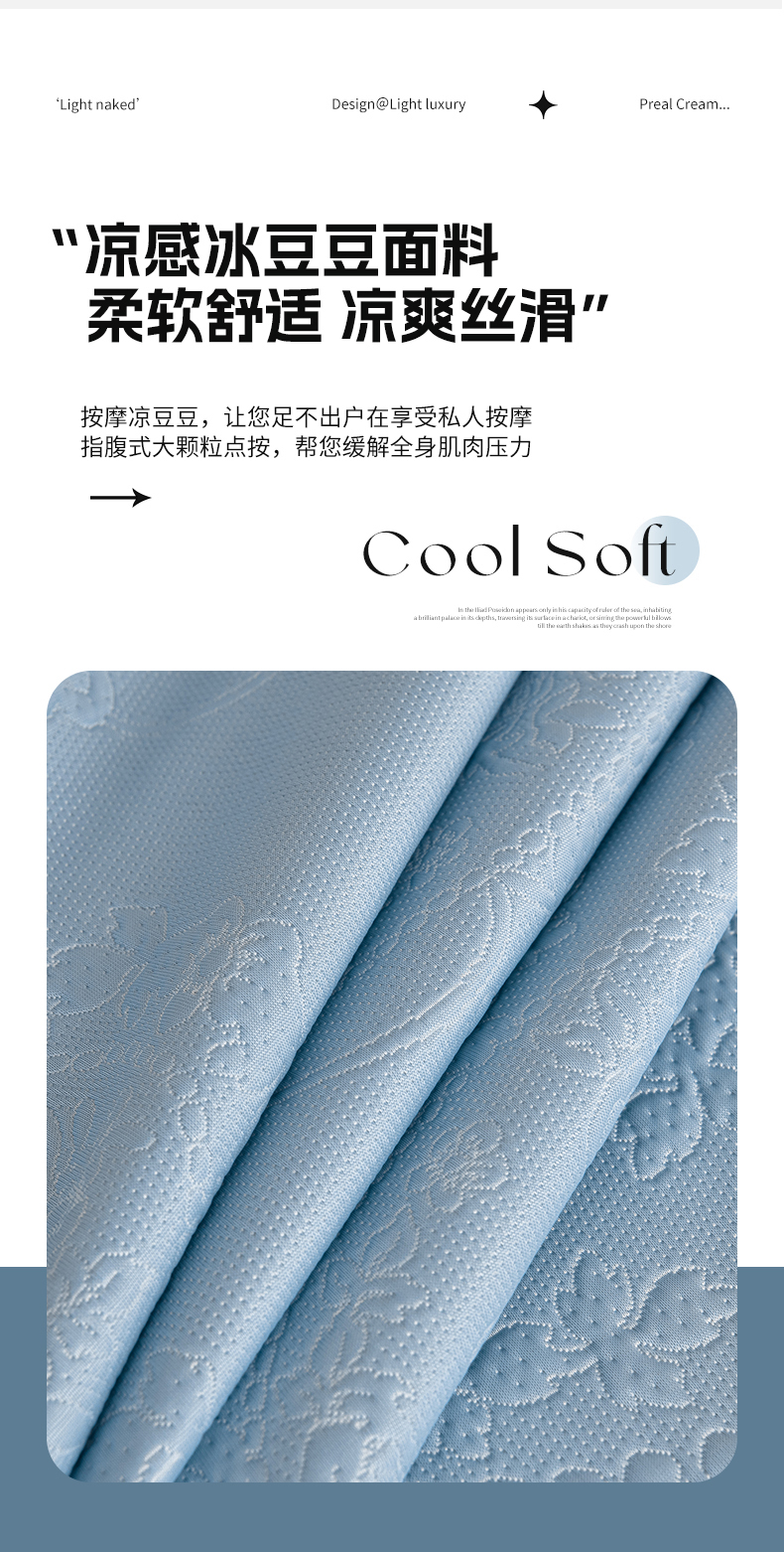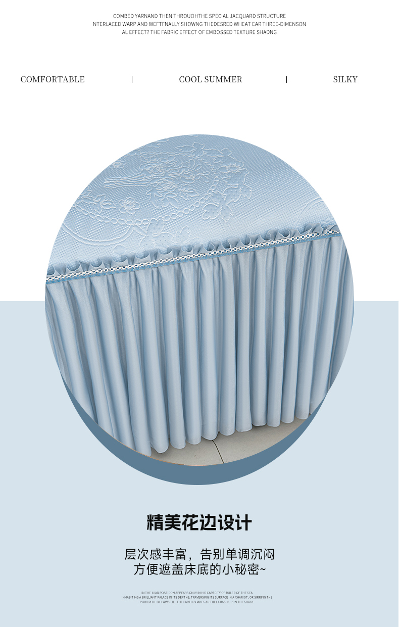 商品名称:2026新款PE聚乙烯中分子凉感冰感凉豆豆床裙三件套欧式-蓝