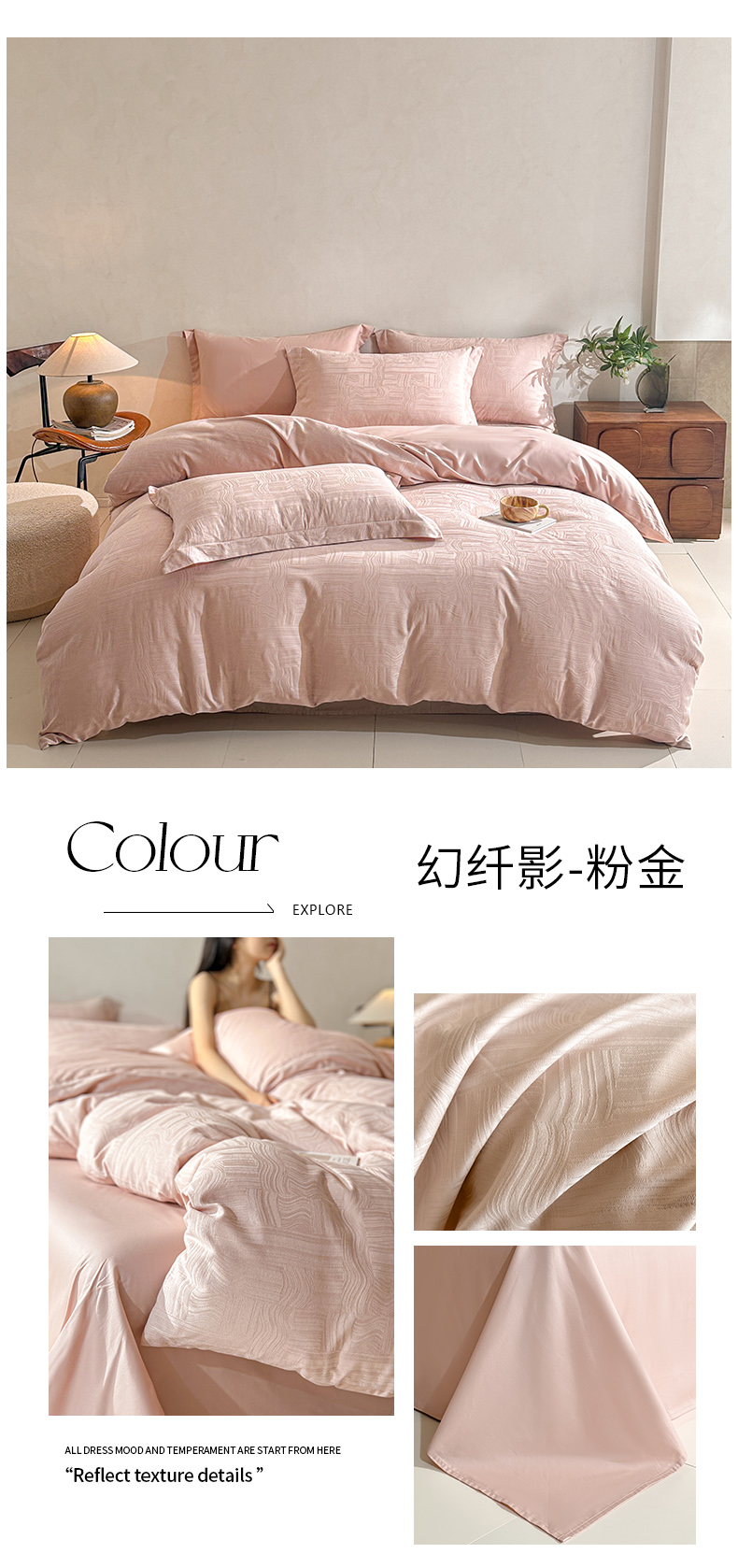 当前位置: 91家纺网 > 商品网购 > 床品套件 > 四件套 > 长绒棉四件套 > 泽西家纺+V17798841158发大图 2026新品60长绒棉提花立体浮雕全棉纯棉四件套-云涧奢影系列 幻纤影-浅茶