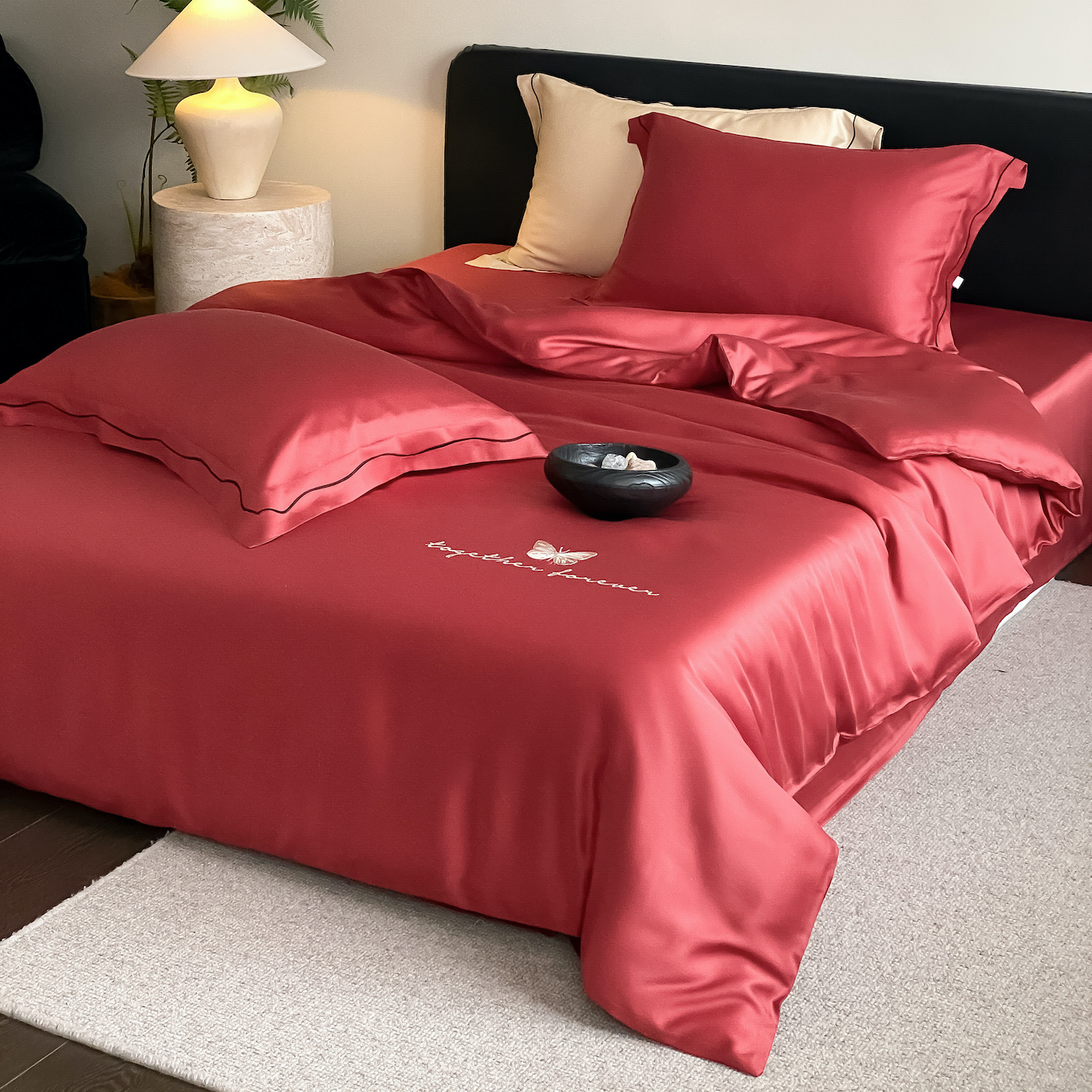 (总)FORTWO家纺原创设计(FOR TWO家纺) 2026新款兰精天丝绣花四件套,秘境-紫,秘境-香槟,秘境-奶白,秘境-绿,秘境-蓝,秘境-灰,秘境-红,秘境-粉
